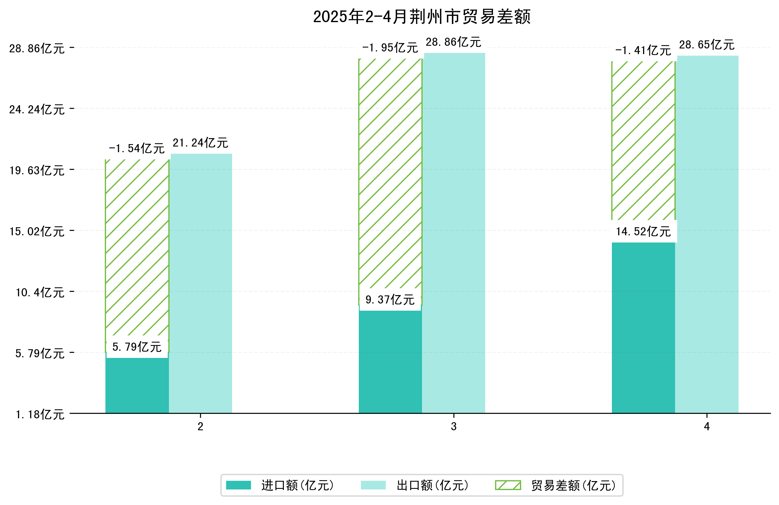 (图四:2025年2-4月荆州市贸易差额)