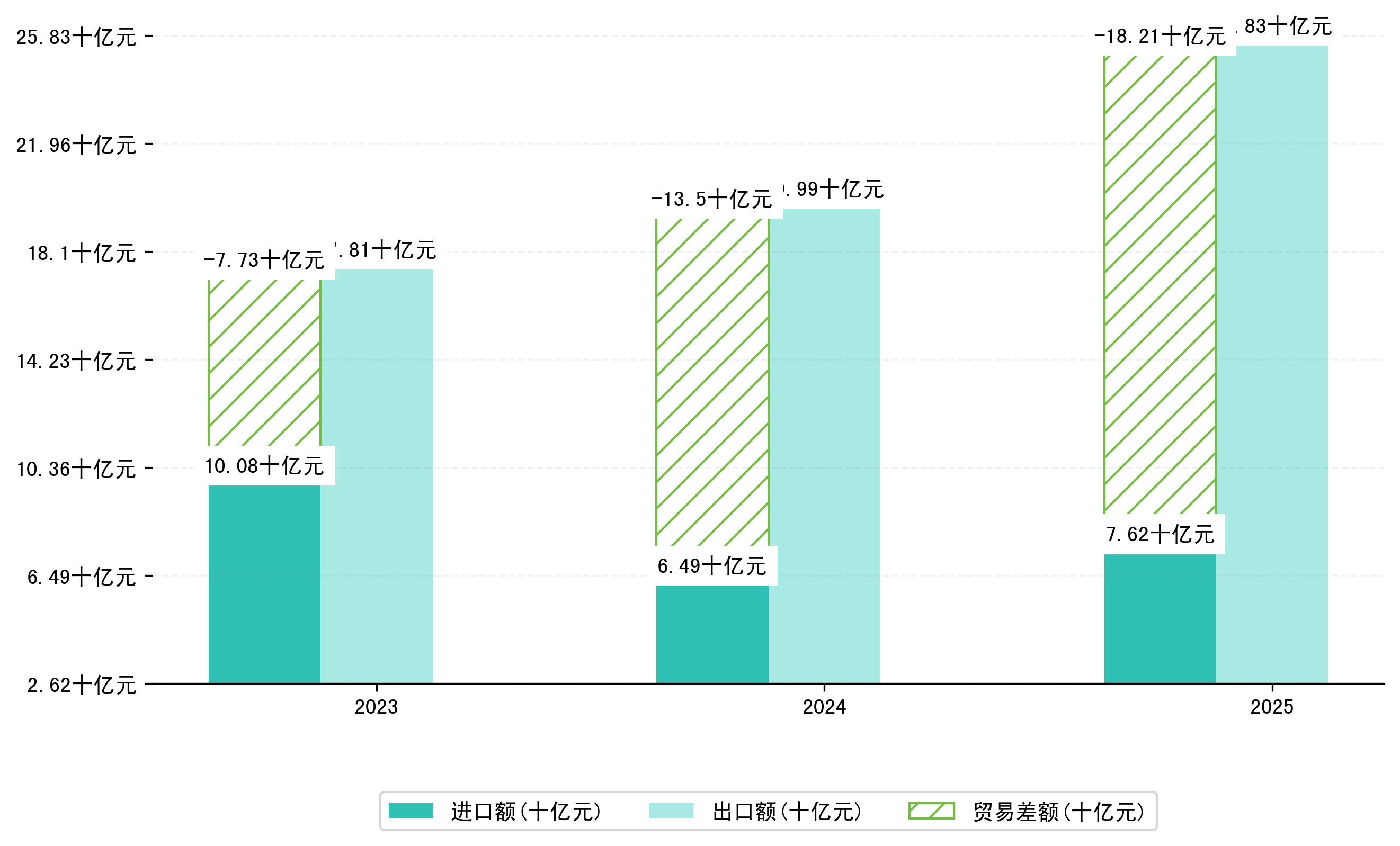 以美元计,2025年1-9月荆州市贸易差额为25,3447,0123万美元(贸易顺差),相比上年同期增加了6,3712,8574万美元,同比增加33.58%。