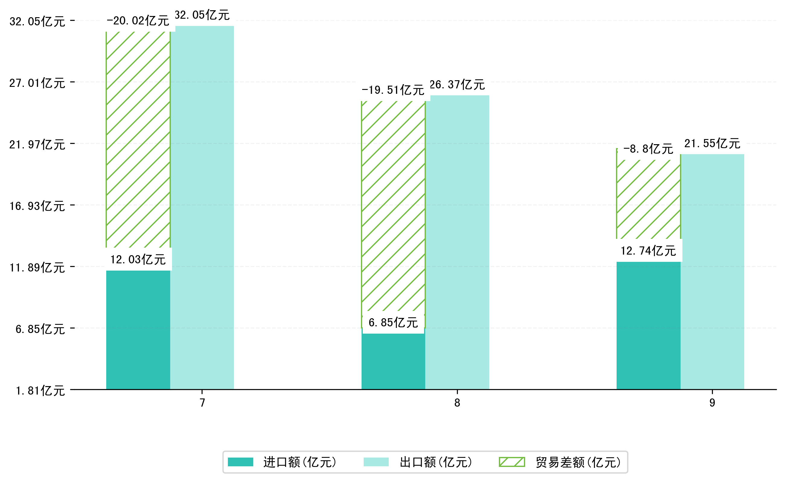 2025年9月荆州市进出口总额及进出口差额统计分析