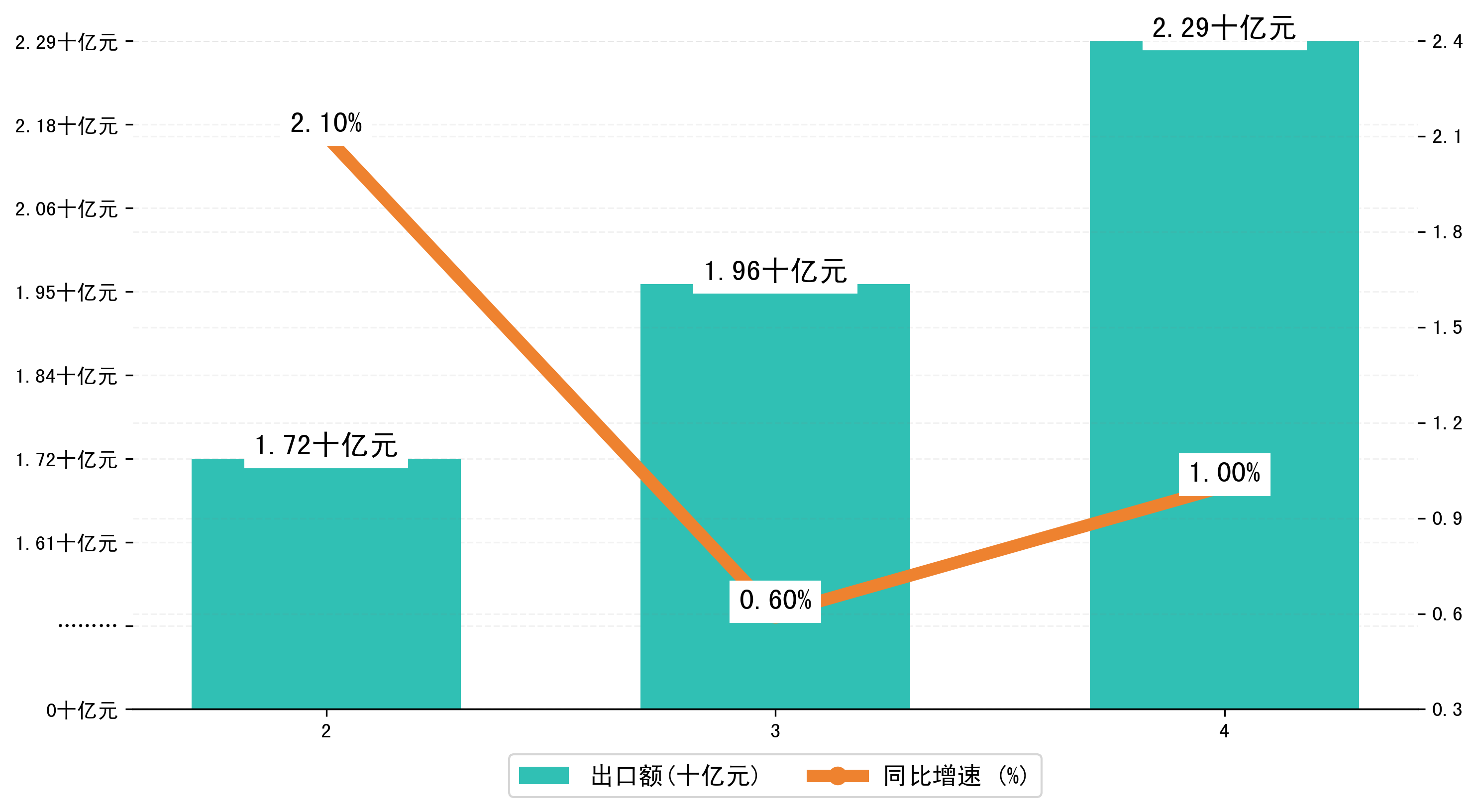 以人民币计,2023年1-4月荆州市出口额为82,1479.4432万元,相比上年同期增加了8675.6379万元,同比增加了1.00%。
