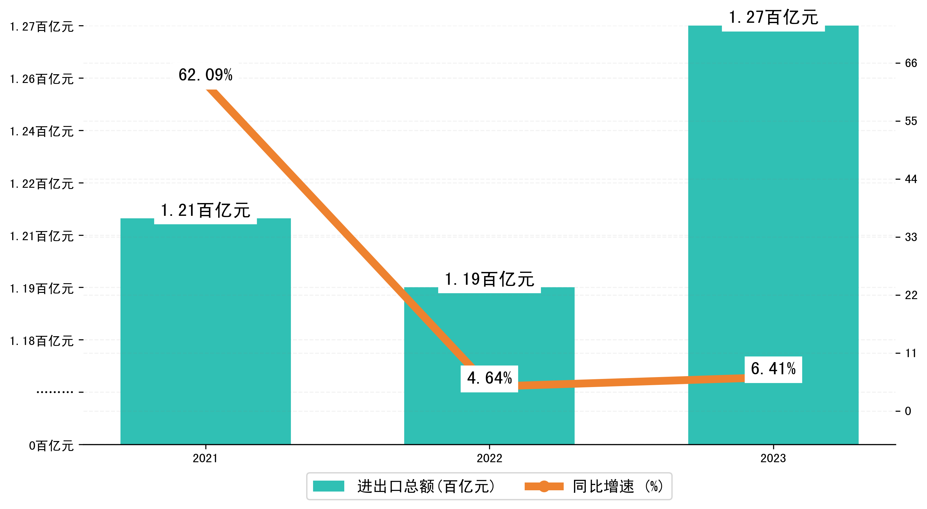 以人民币计,2023年1-4月荆州市进出口总额为127,0539.1287万元,相比上年同期增加了7,6517.6355万元,同比增加了5.70%。