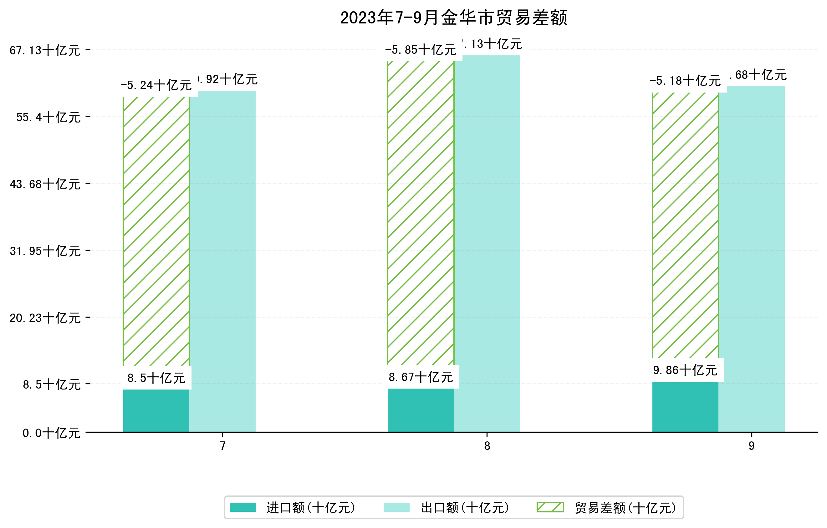 以人民币计,2023年9月金华市贸易差额为518,2083,0533万元(贸易顺差),相比上月减少了66,3383,3816万元,即9,6032,5931万美元;相比上年同期增加了50,1537,4849万元,同比增加10.72%。