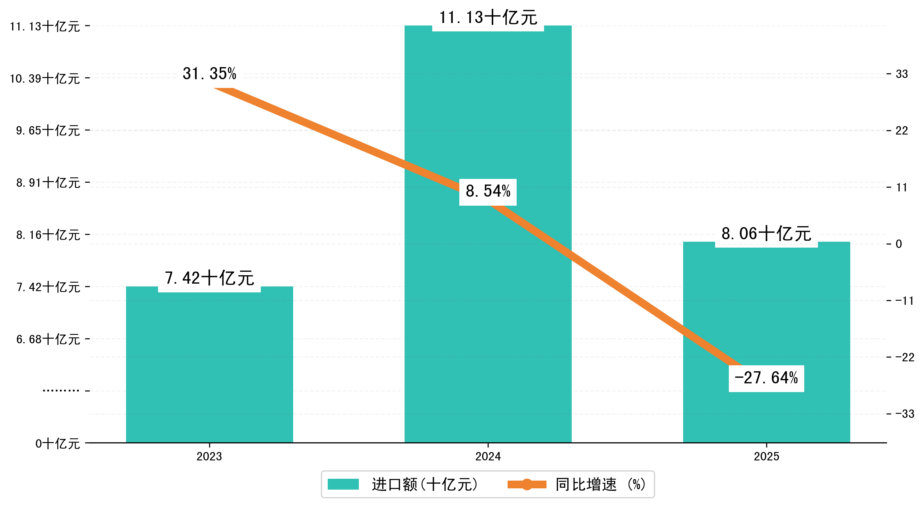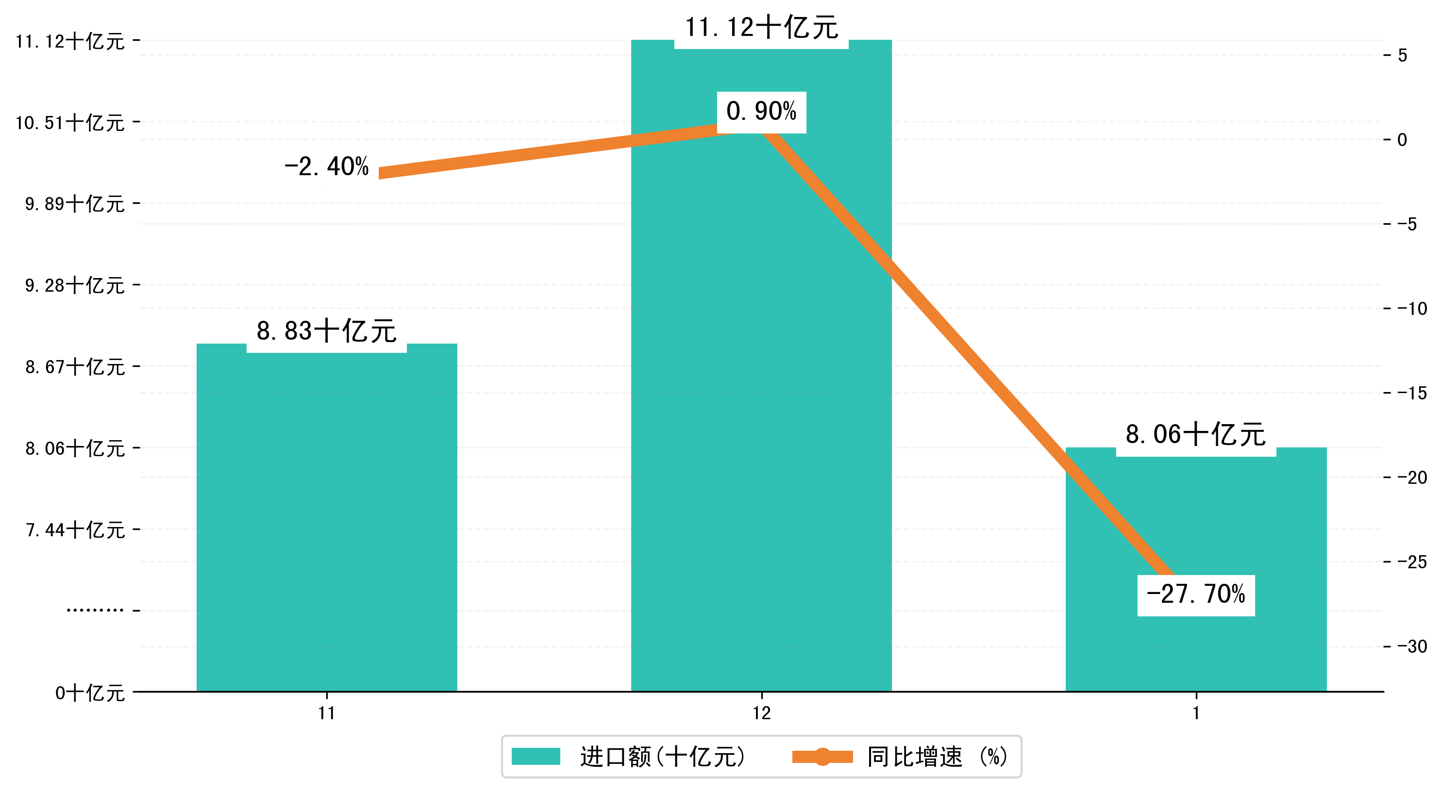 以人民币计,2025年1月金华市进口额为80,5575.8034万元,相比上月减少了30,6251.2814万元;相比上年同期减少了30,7783.1808万元,同比减少了-27.70%。