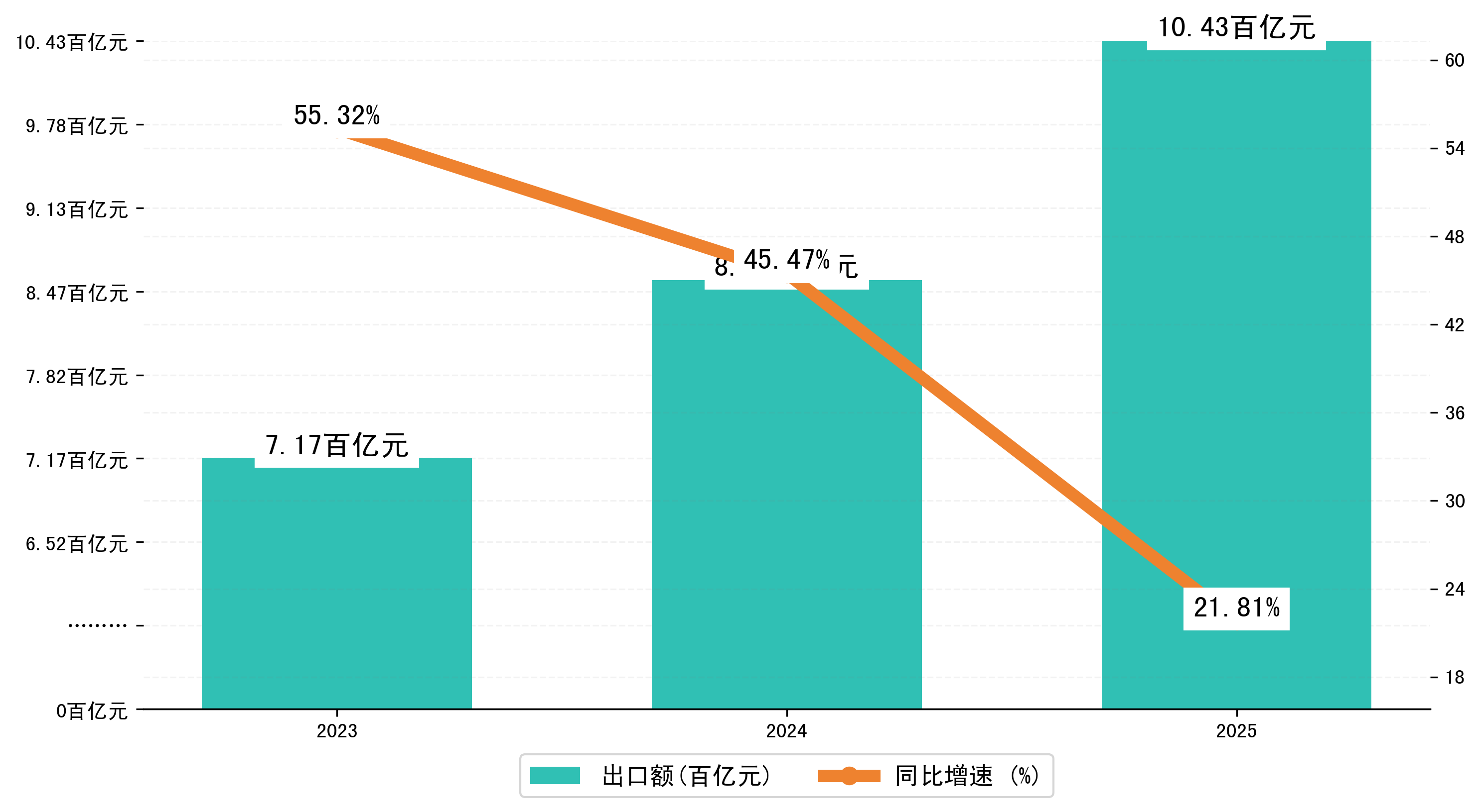 以人民币计,2025年1月金华市出口额为1043,0488.9533万元,相比上月增加了422,3220.881万元;相比上年同期增加了186,7328.199万元,同比增加了21.90%。