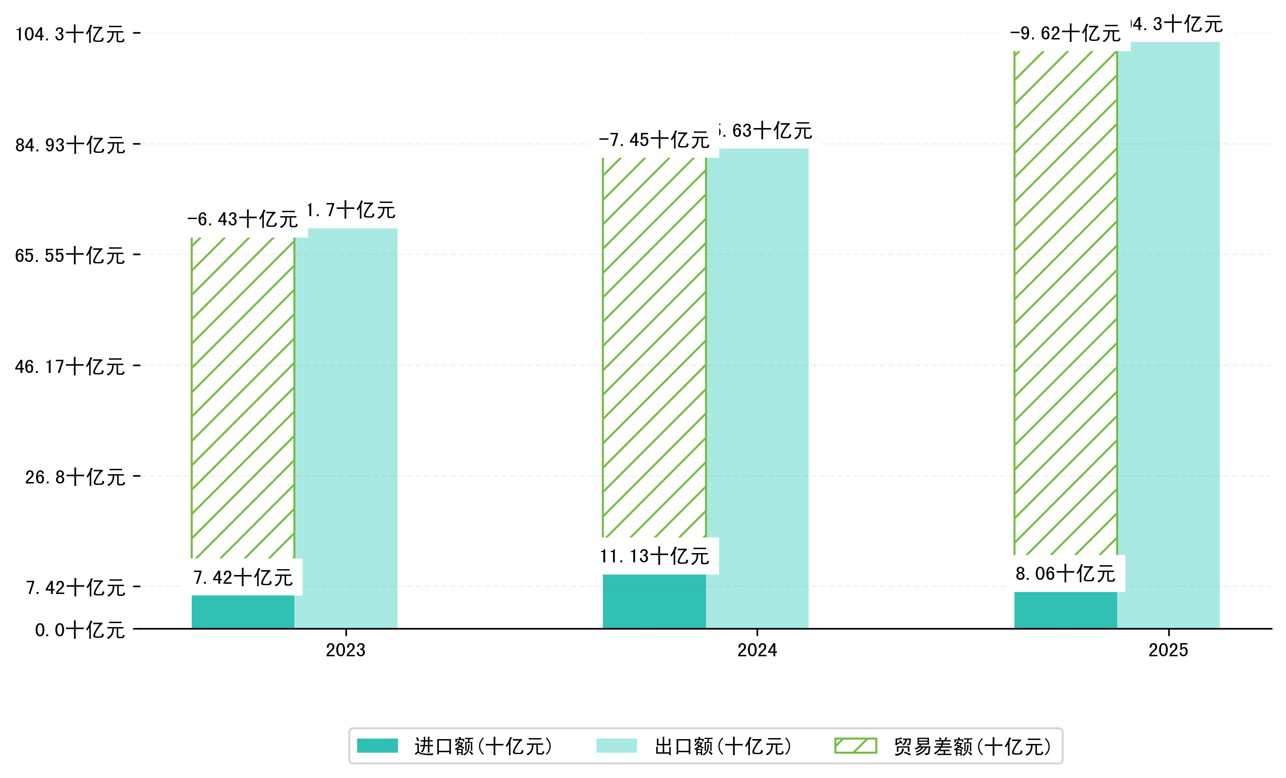 以人民币计,2025年1月金华市贸易差额为962,4913,1499万元(贸易顺差),相比上月增加了452,9472,1624万元,即62,8144,8325万美元;相比上年同期增加了217,5111,3798万元,同比增加29.2%。