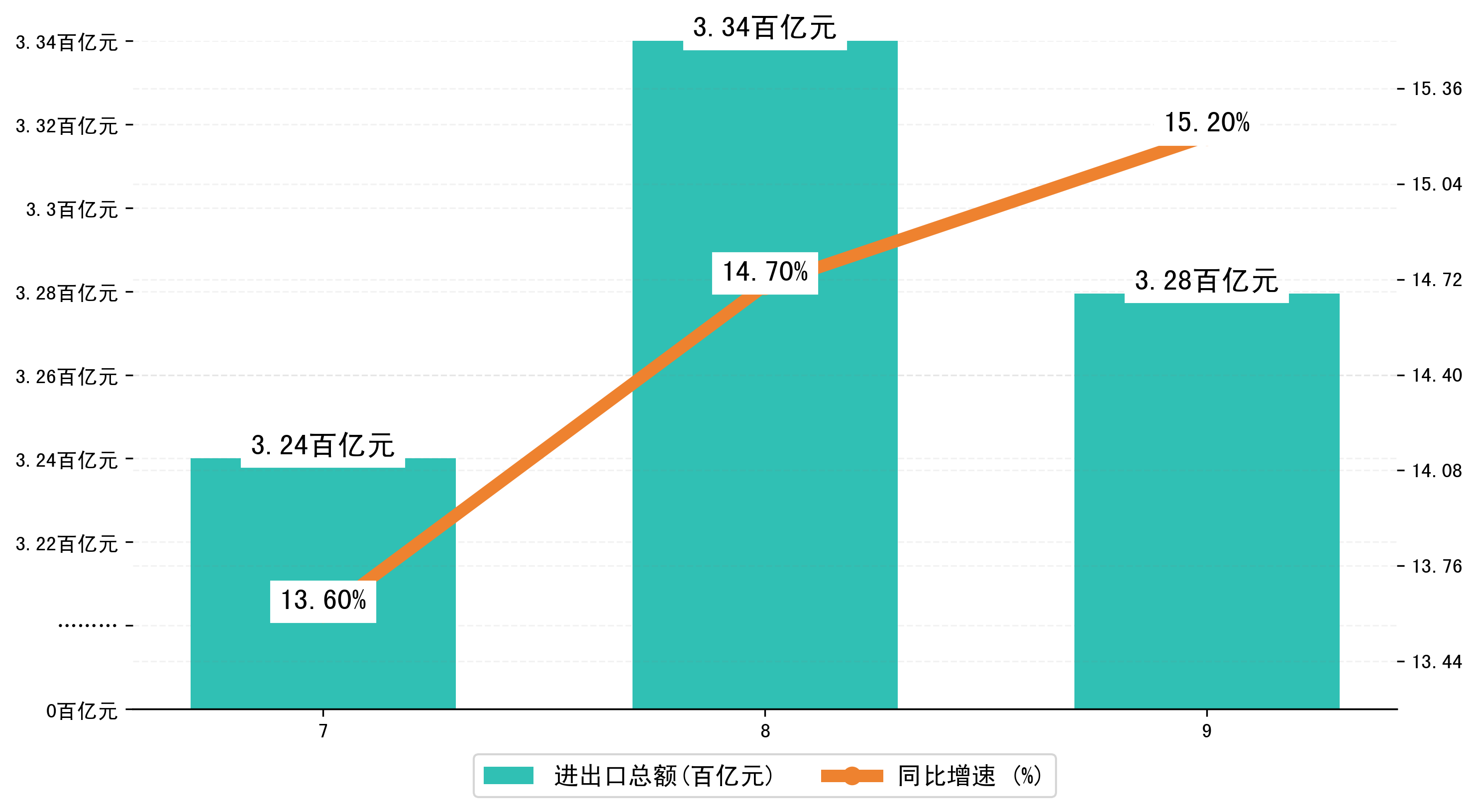 以人民币计,2025年9月常州市进出口总额为328,1106.9862万元,相比上月减少了6,0840.7052万元;相比上年同期增加了51,5327.5712万元,同比增加了15.20%。