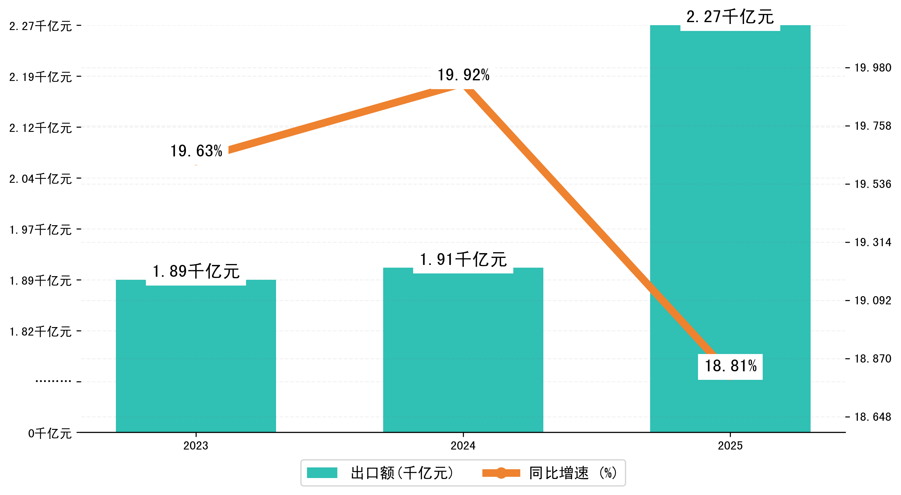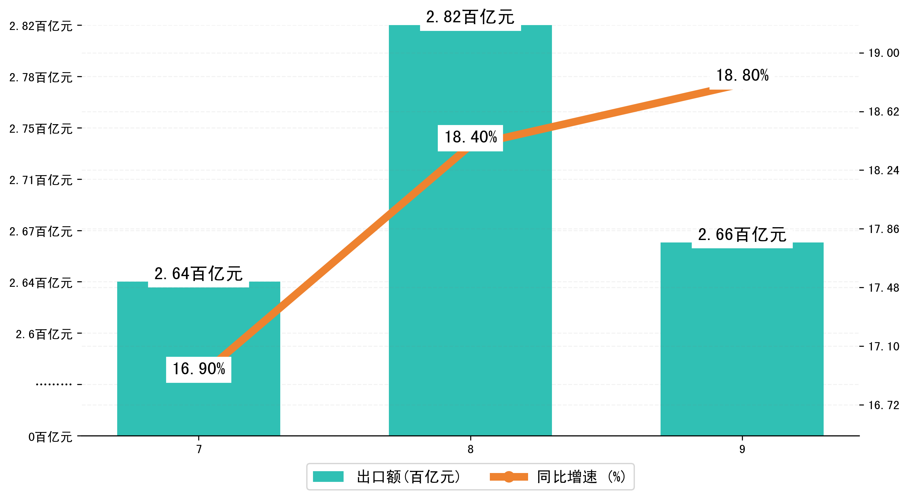 以人民币计,2025年1-9月常州市出口额为2267,9884.7263万元,相比上年同期增加了359,0921.5338万元,同比增加了18.80%。