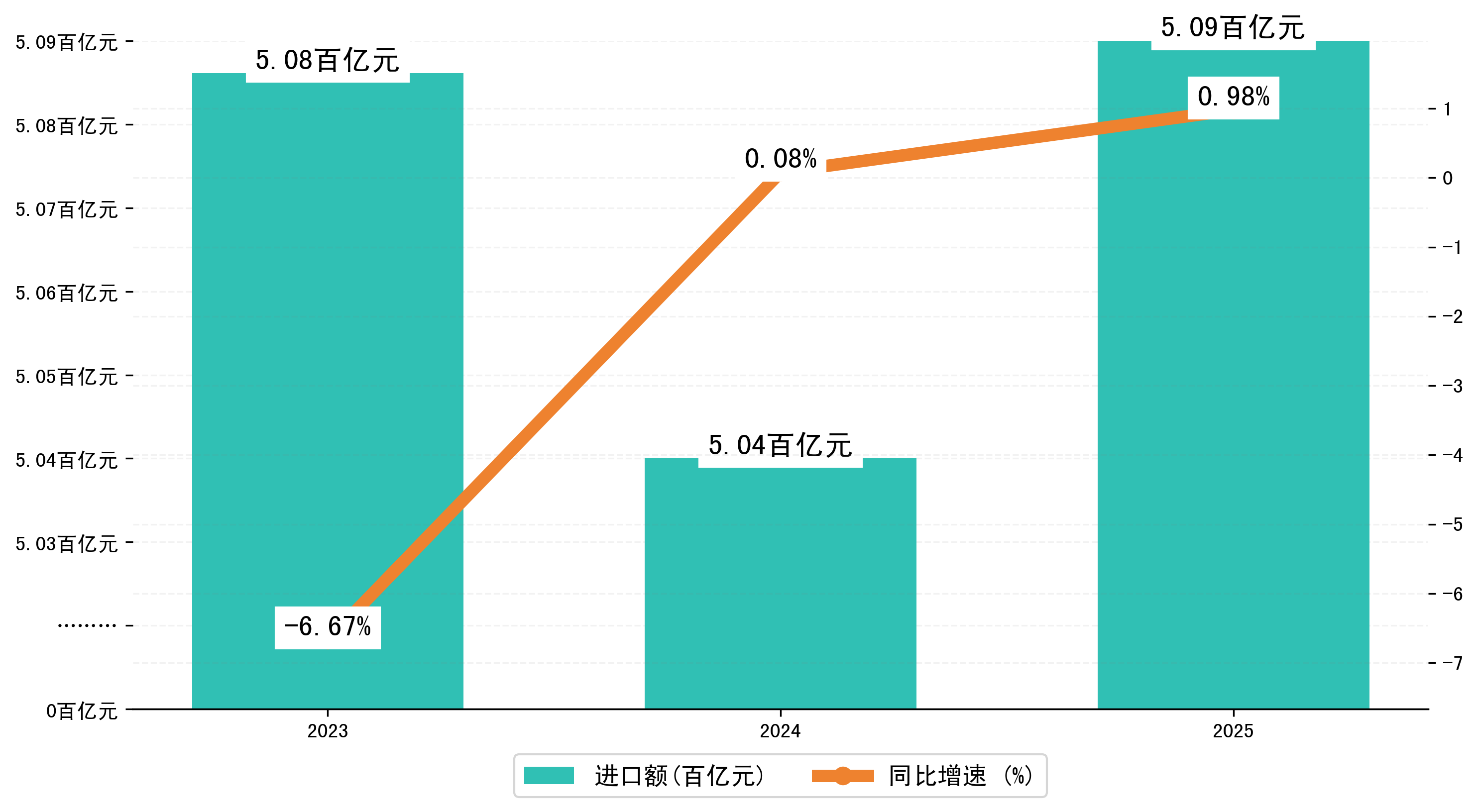 以人民币计,2025年1-9月常州市进口额为508,6909.9639万元,相比上年同期增加了4,9184.0516万元,同比增加了1.40%。