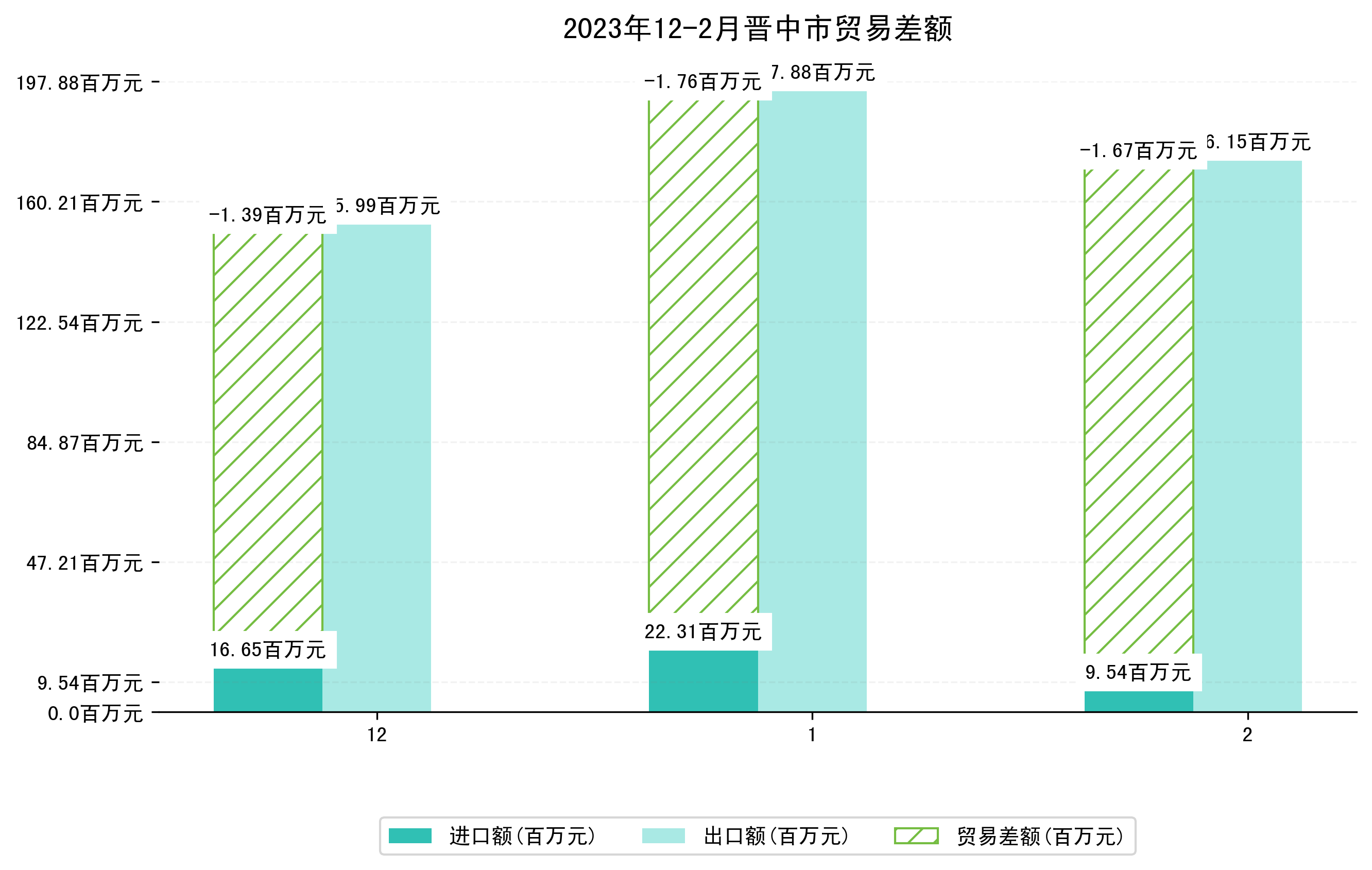 2023年2月晋中市进出口总额及进出口差额统计分析