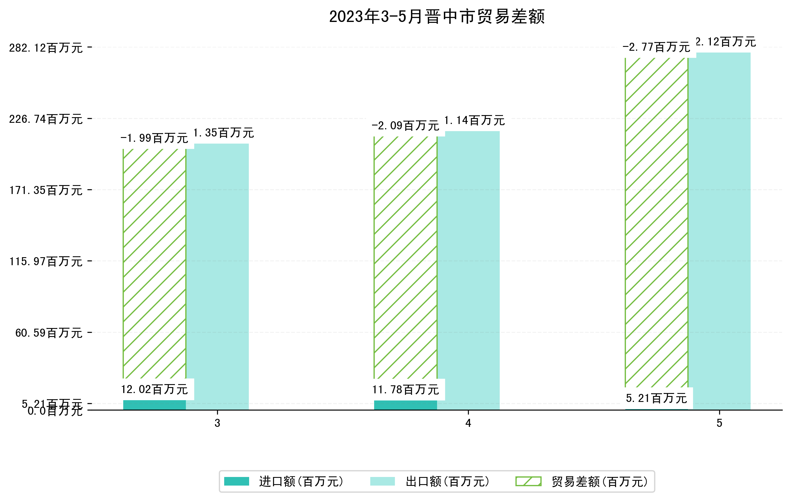 (图一:2023年3-5月晋中市进出口总额)