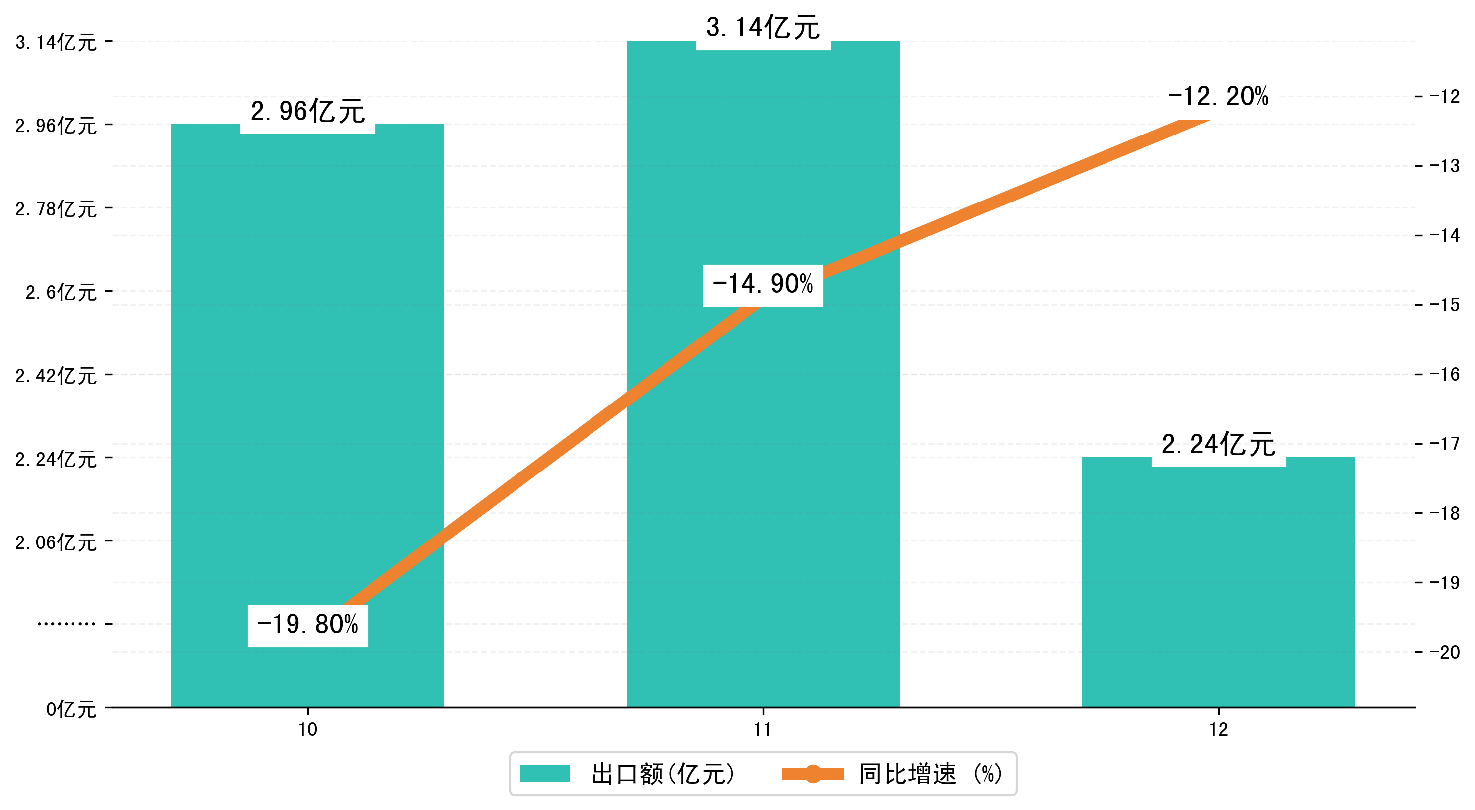 以美元计,2023年1-12月晋中市出口额为4,1681.8912万美元,相比上年同期减少了1,0587.8238万美元,同比减少-17.10%。
