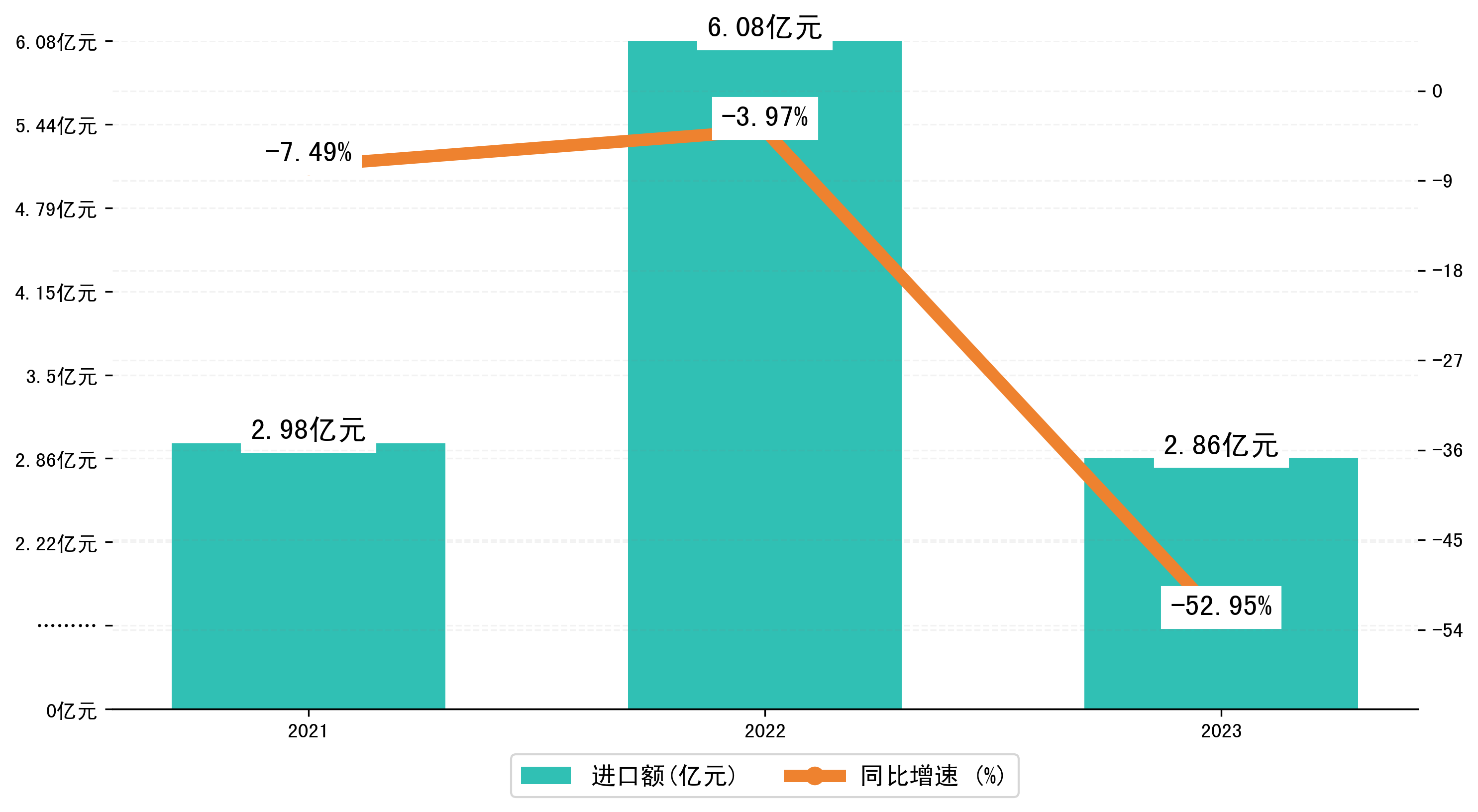 以人民币计,2023年1-12月晋中市进口额为2,8605.77万元,相比上年同期减少了3,2196.2336万元,同比减少了-52.90%。