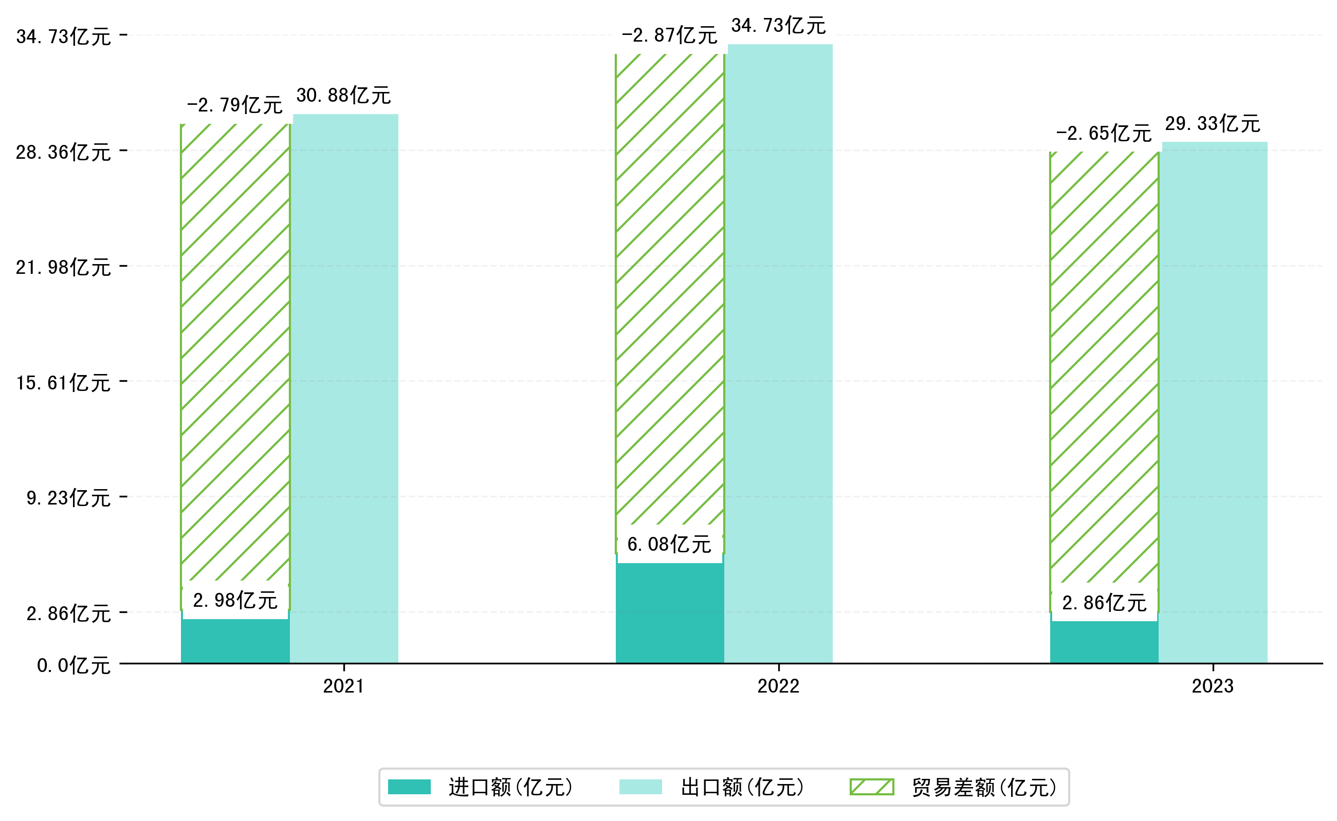 以人民币计,2023年1-12月晋中市贸易差额为26,4717,5984万元(贸易顺差),相比上年同期减少了2,1783,4262万元,同比减少-7.6%。