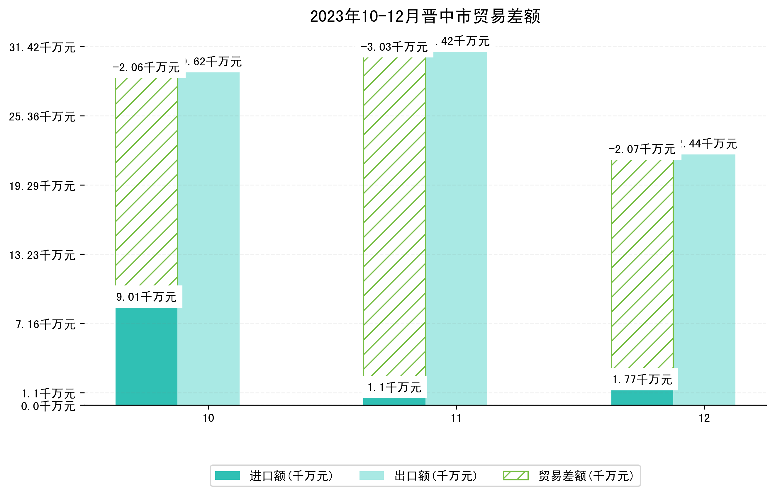 2023年12月晋中市进出口总额及进出口差额统计分析