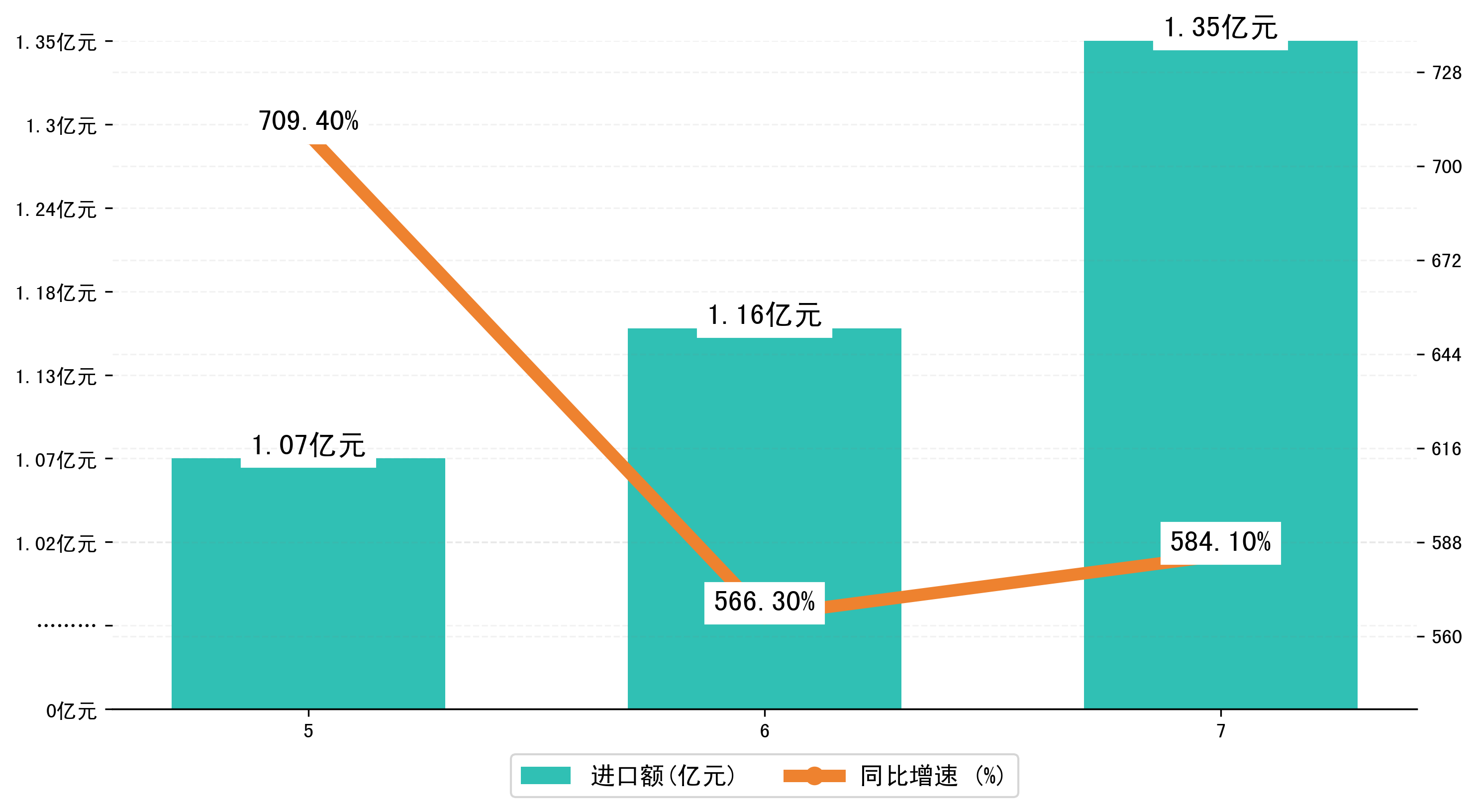 以人民币计,2024年7月晋中市进口额为1,3524.1144万元,相比上月增加了1925.4959万元;相比上年同期增加了1,1781.5969万元,同比增加了584.10%。