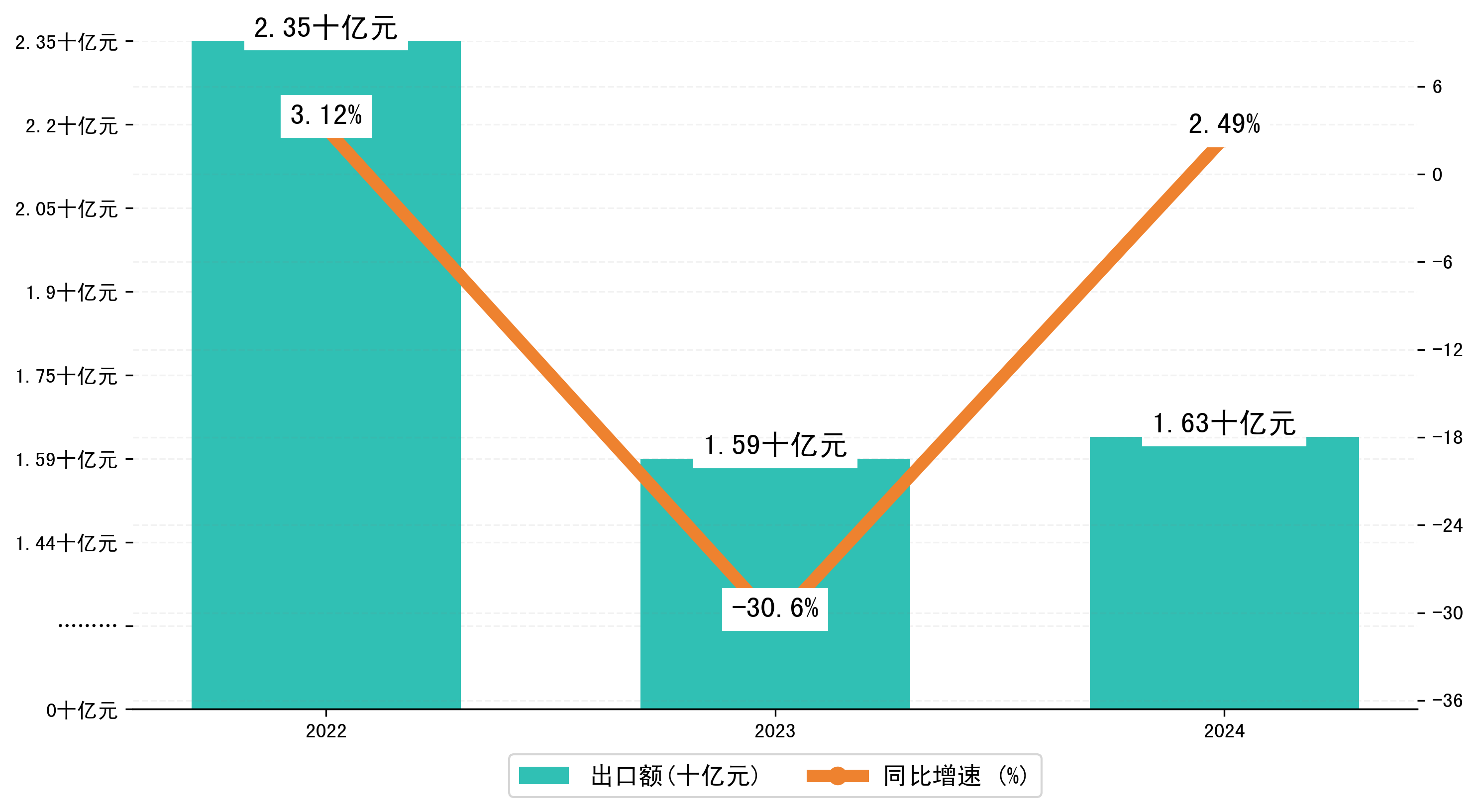 以美元计,2024年1-7月晋中市出口额为2,2992.6384万美元,相比上年同期增加了24.1497万美元,同比增加-0.10%。