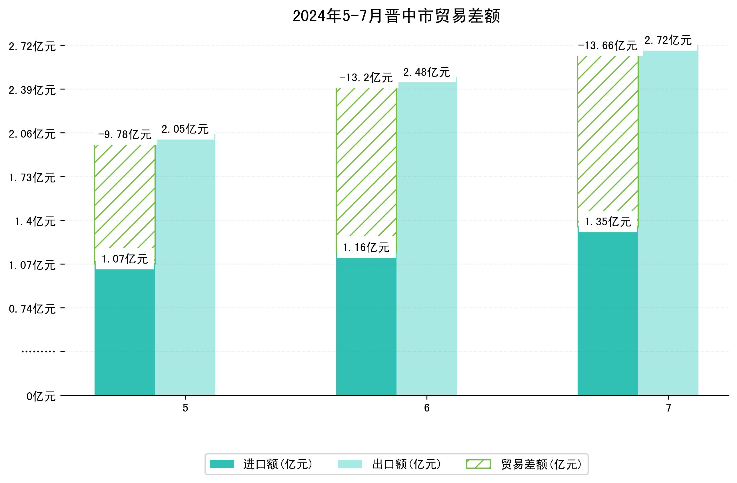 2024年7月晋中市进出口总额及进出口差额统计分析