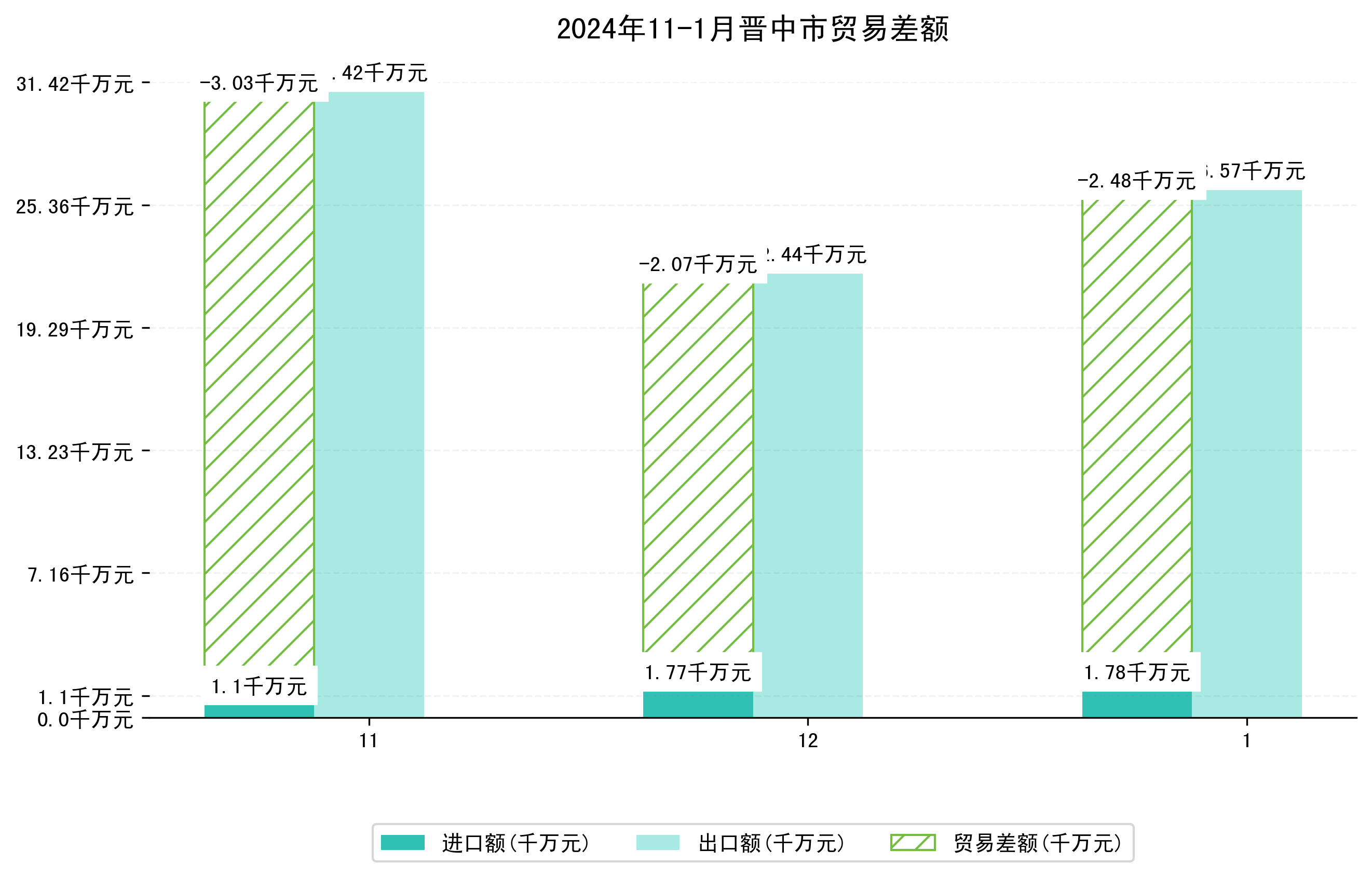 2024年1月晋中市进出口总额及进出口差额统计分析