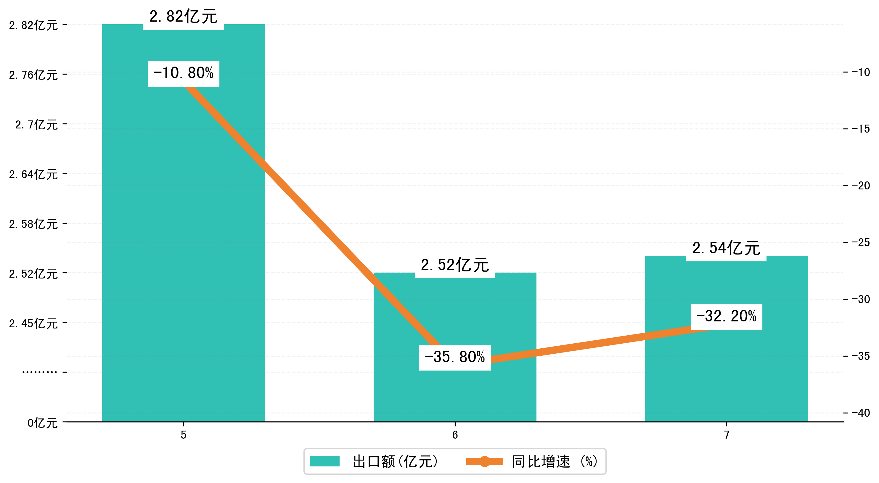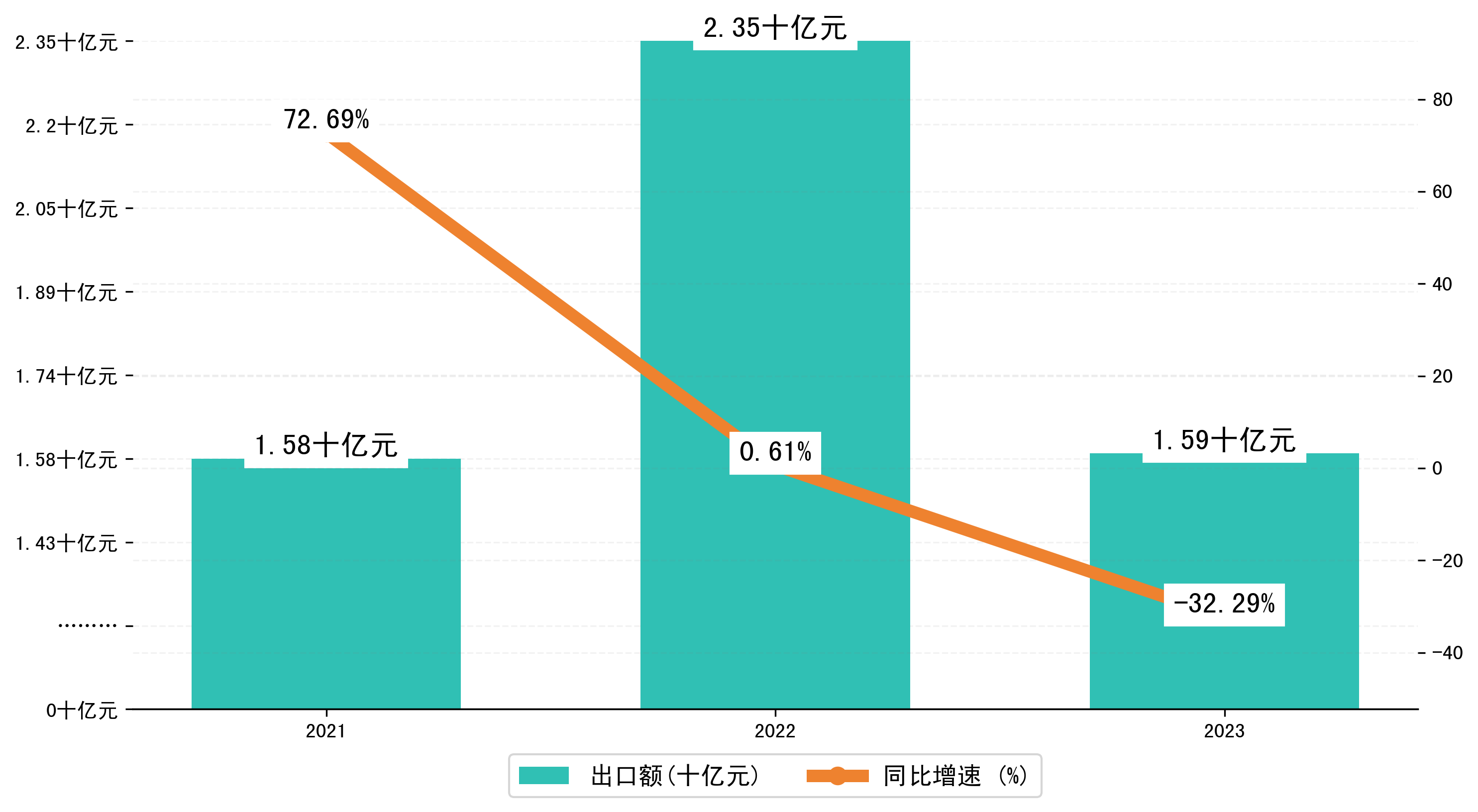 以人民币计,2023年1-7月晋中市出口额为15,9385.5903万元,相比上年同期减少了7,6001.8561万元,同比减少了-32.20%。