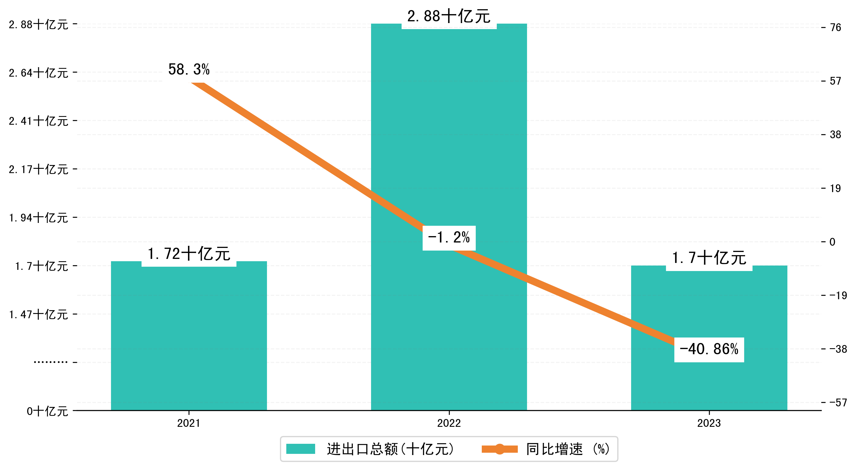 以人民币计,2023年1-7月晋中市进出口总额为17,0211.4273万元,相比上年同期减少了11,7576.5909万元,同比减少了-40.80%。