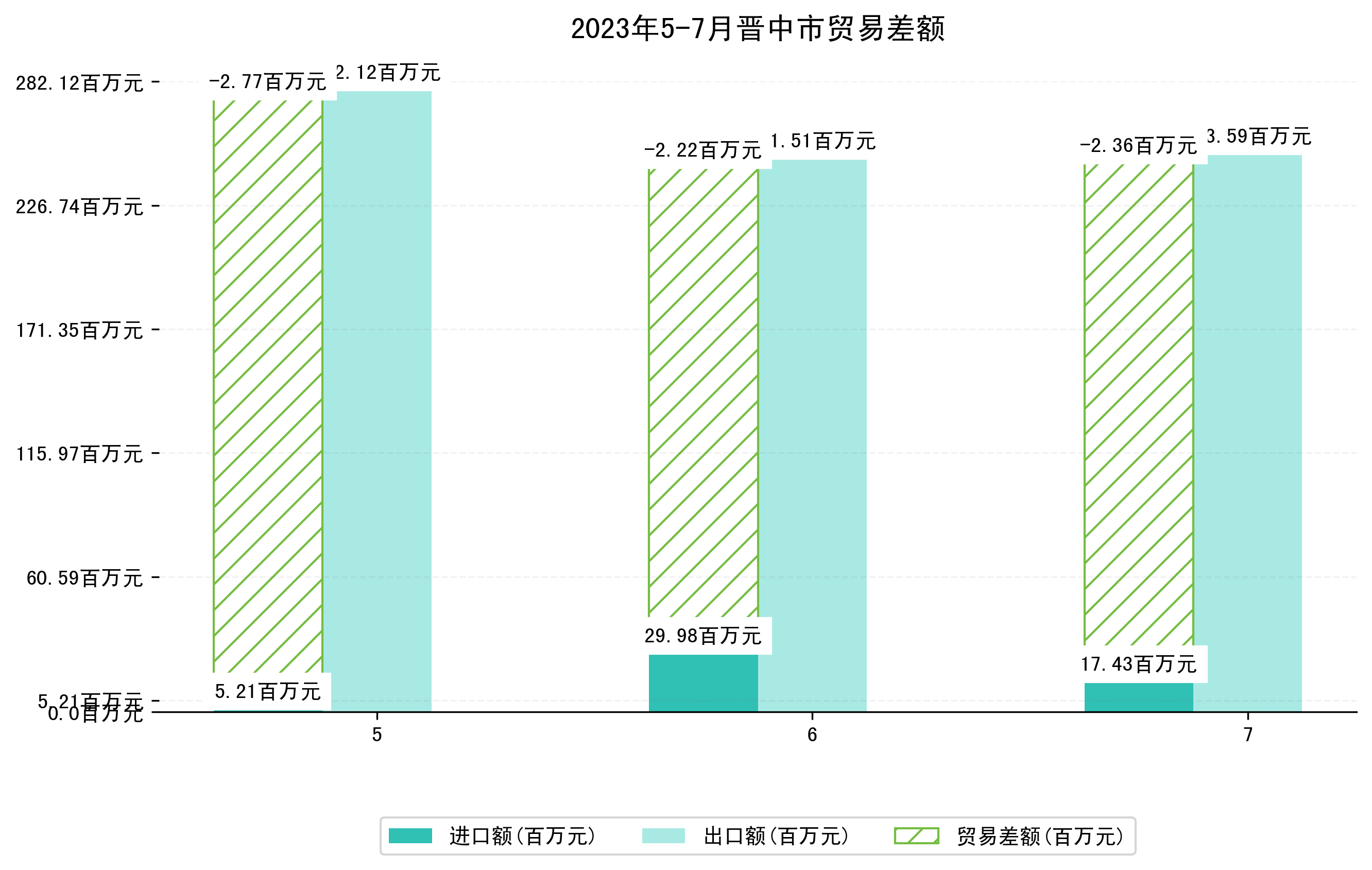 2023年7月晋中市进出口总额及进出口差额统计分析