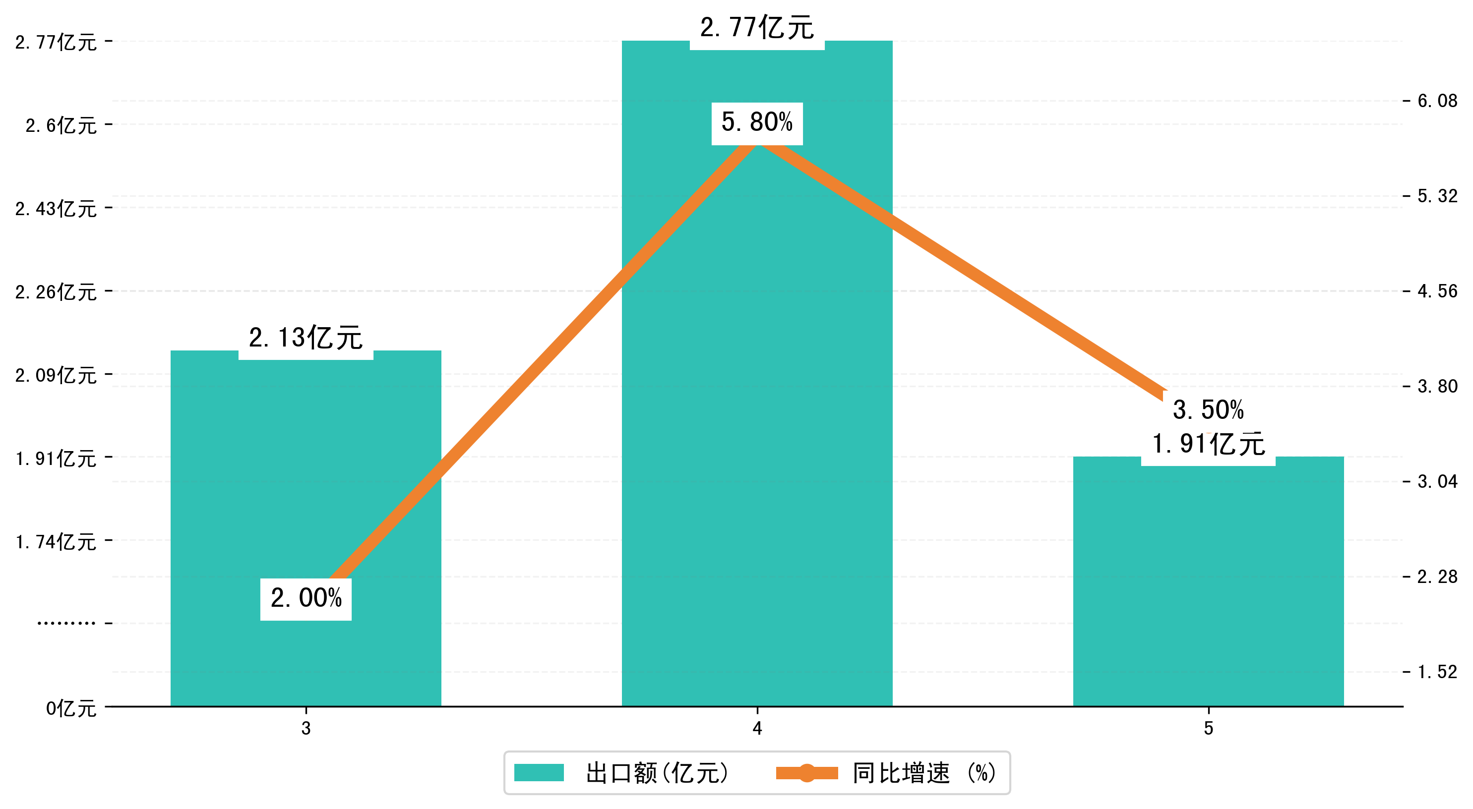 以人民币计,2025年5月晋中市出口额为1,9139.4638万元,相比上月减少了8609.5183万元;相比上年同期减少了1364.8718万元,同比增加了3.50%。
