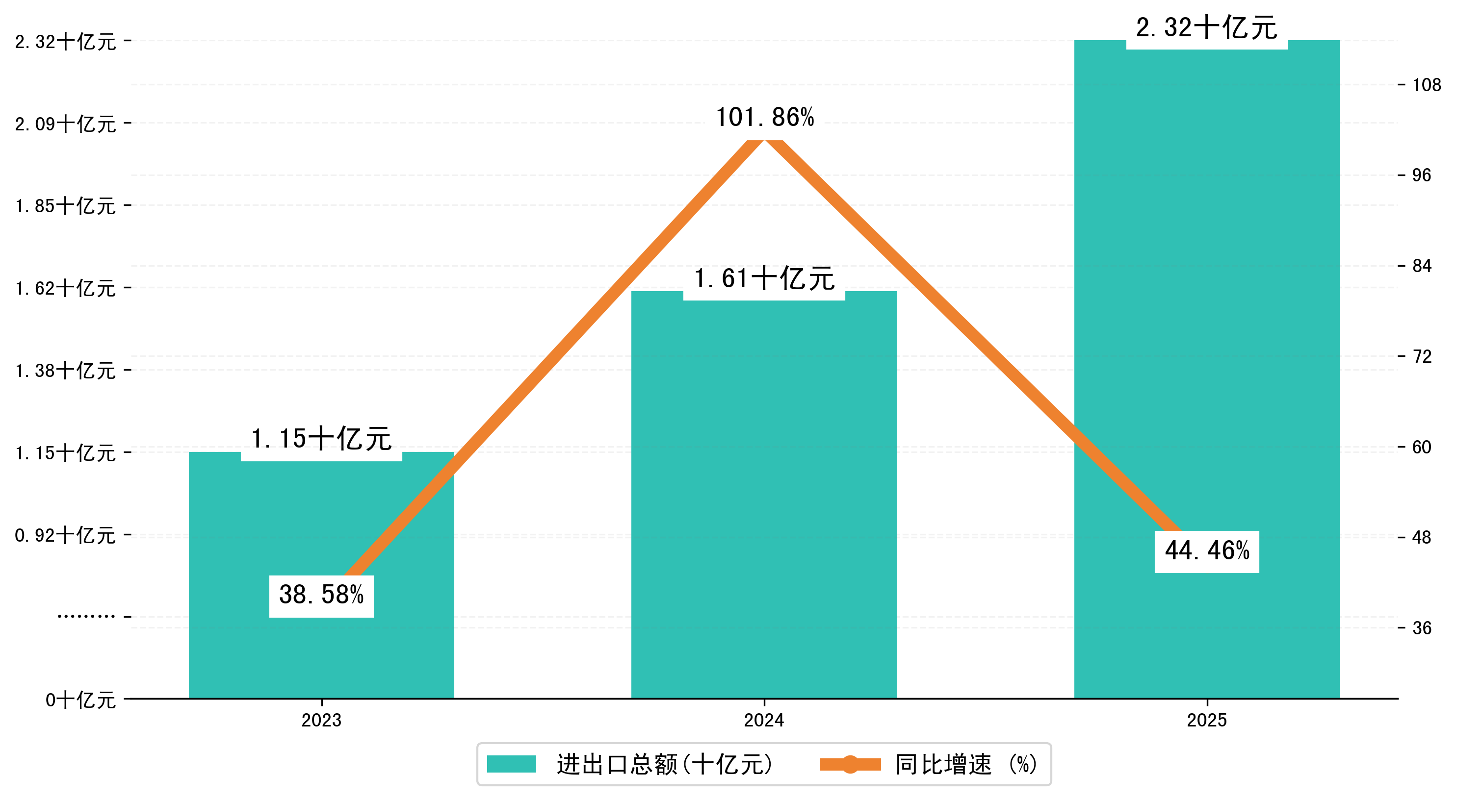 以人民币计,2025年1-5月晋中市进出口总额为23,2041.7248万元,相比上年同期增加了7,1409.6757万元,同比增加了44.80%。