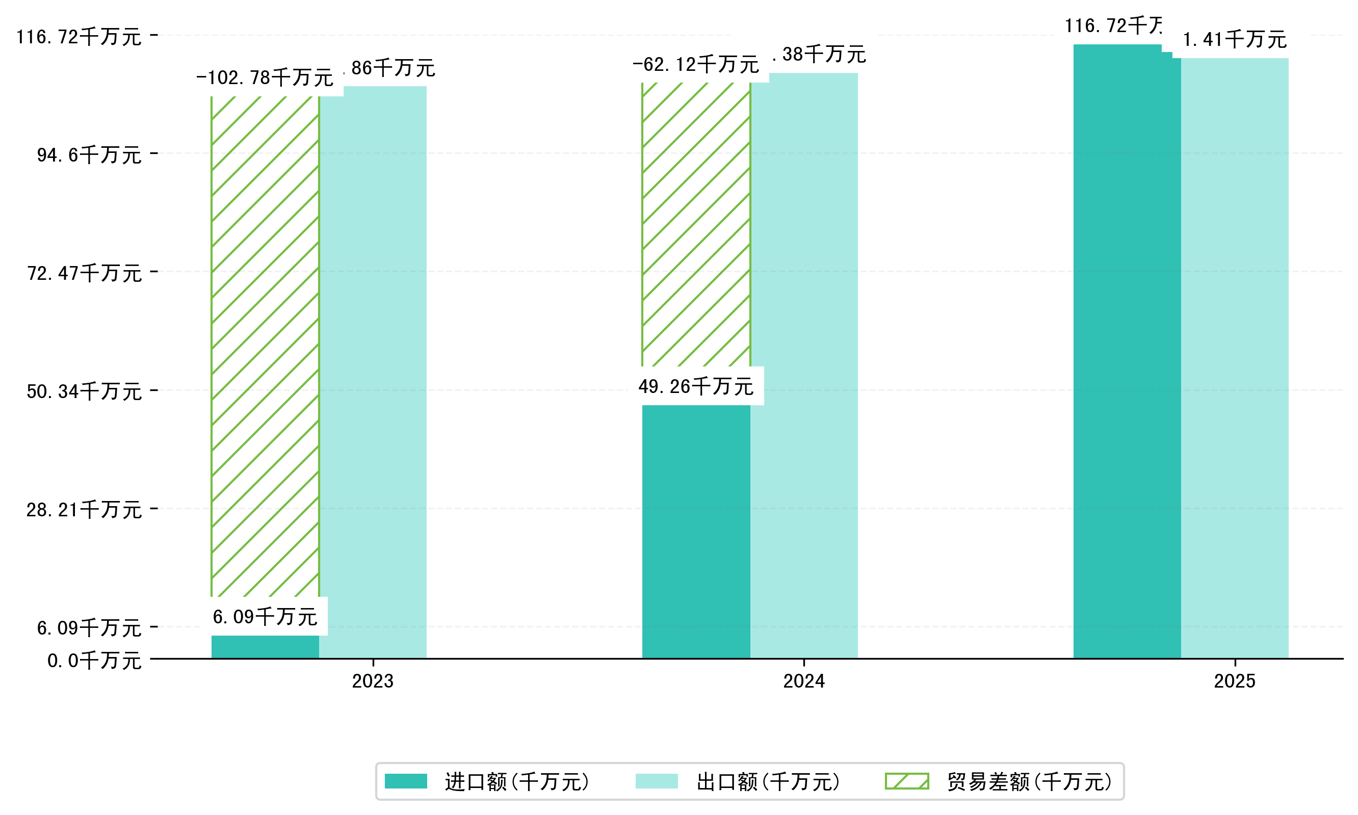 以人民币计,2025年5月晋中市贸易差额为250,0519万元(贸易逆差),相比上月减少了3044,9153万元,即422,7852万美元;相比上年同期减少了1,0028,2188万元,同比减少-102.56%。