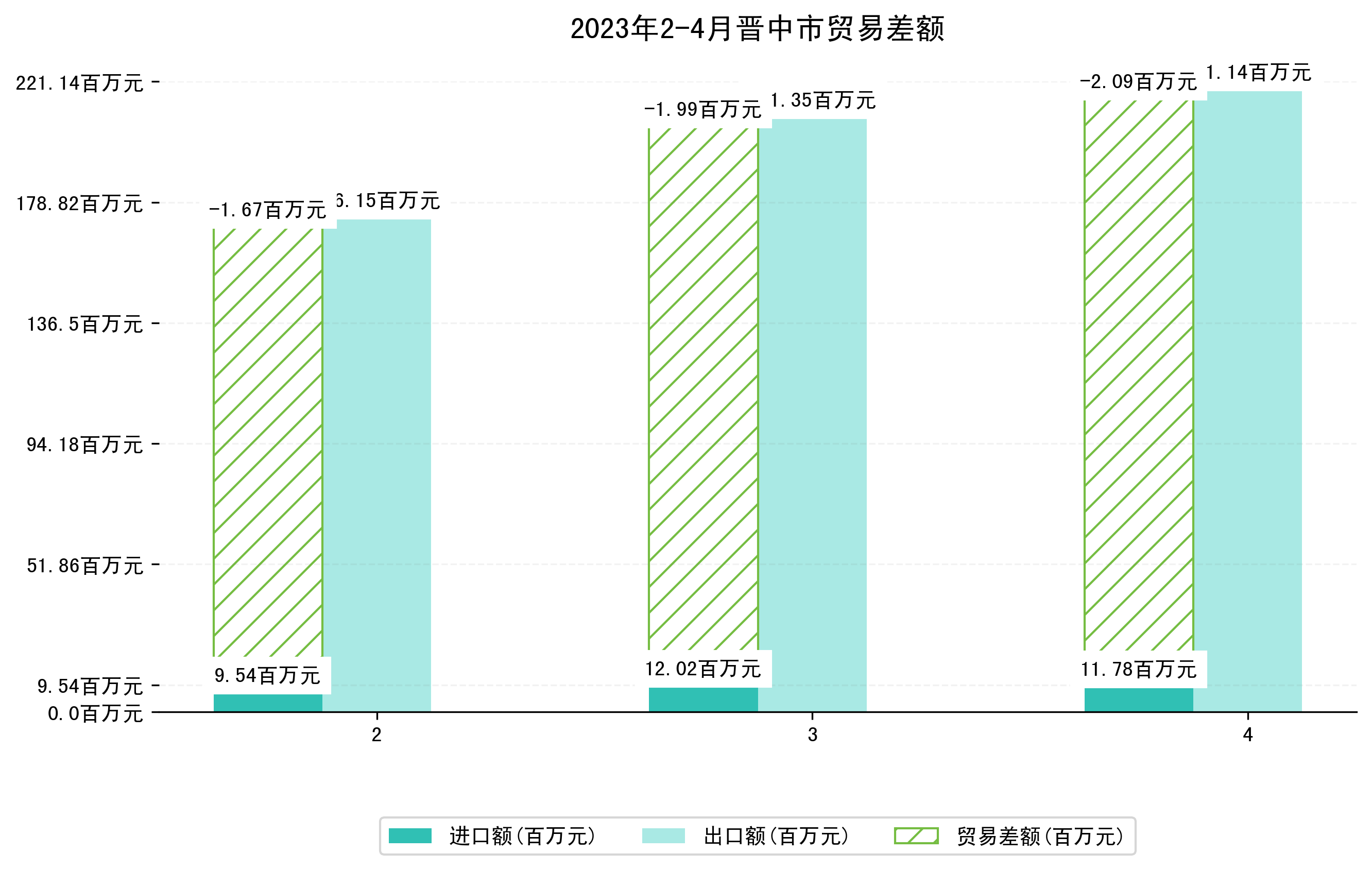 2023年4月晋中市进出口总额及进出口差额统计分析
