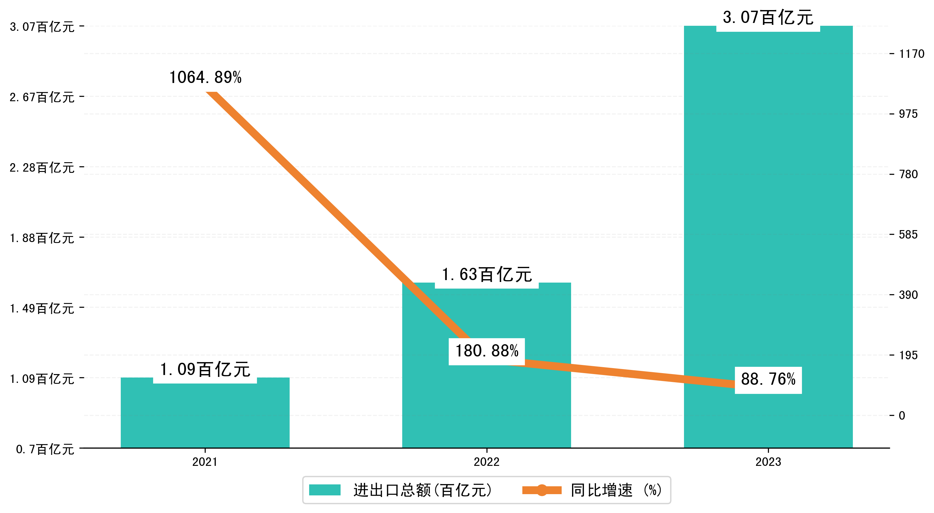 以人民币计,2023年1-2月九江市进出口总额为306,7689.5431万元,相比上年同期增加了144,2536.4203万元,同比增加了92.40%。