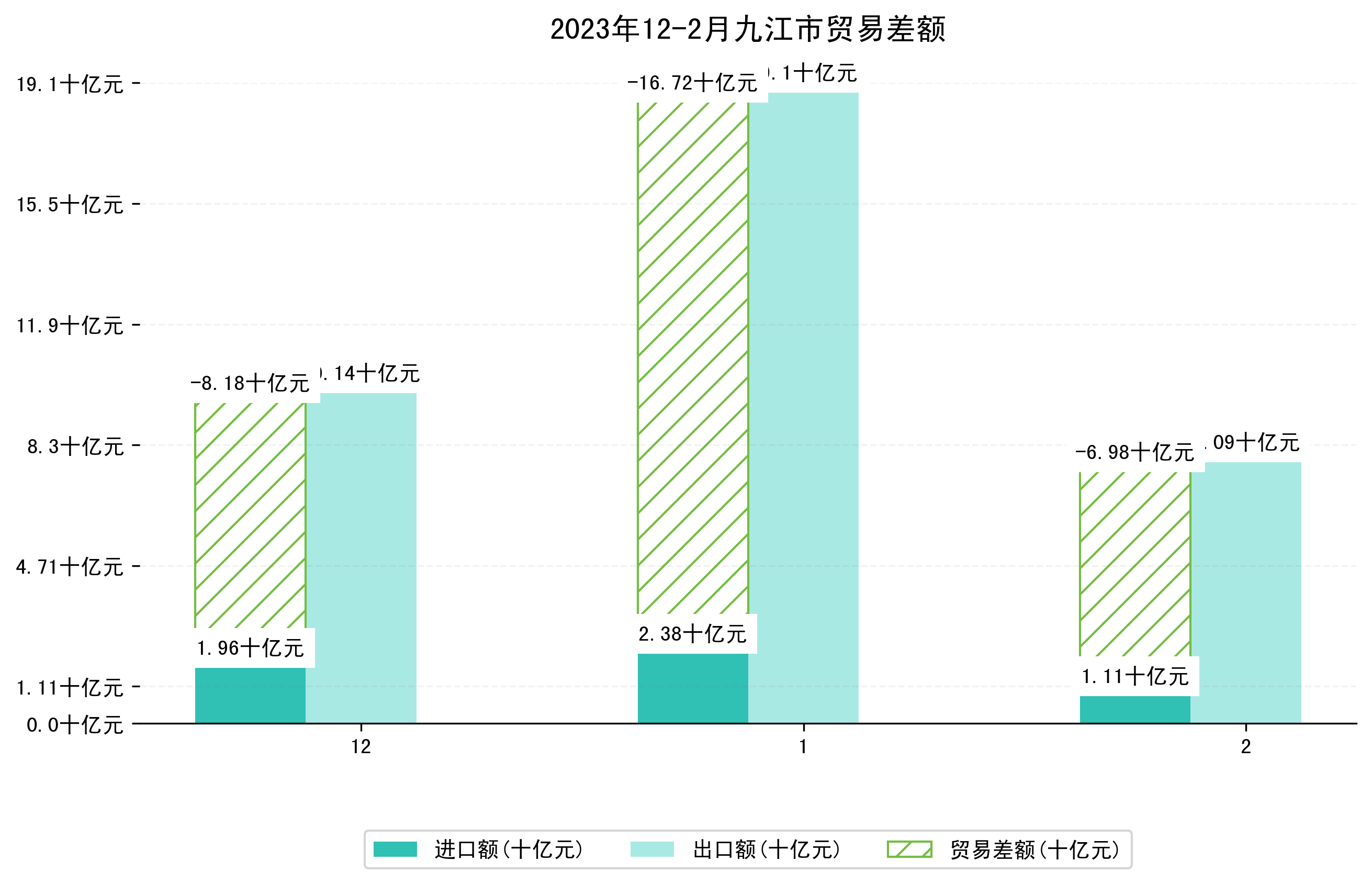 以人民币计,2023年1-2月九江市贸易差额为237,0068,2881万元(贸易顺差),相比上年同期增加了122,0448,0753万元,同比增加106.16%。