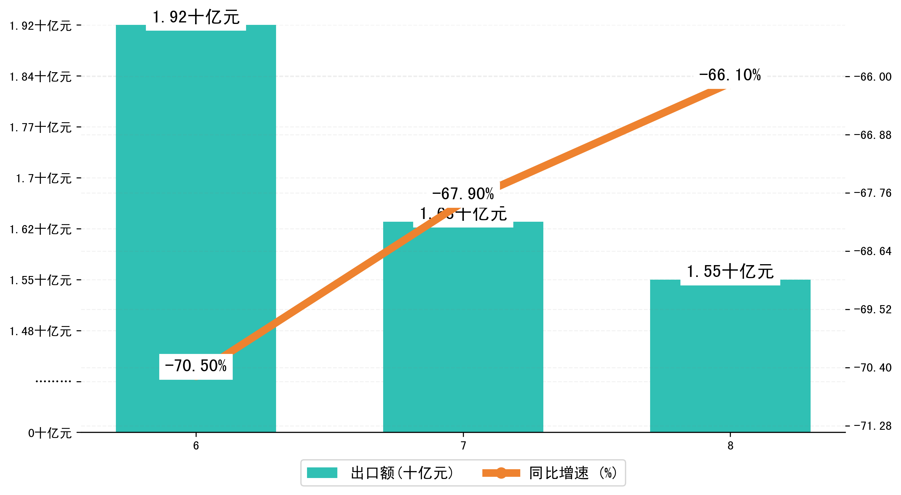 (图二:2024年6-8月九江市出口额)
