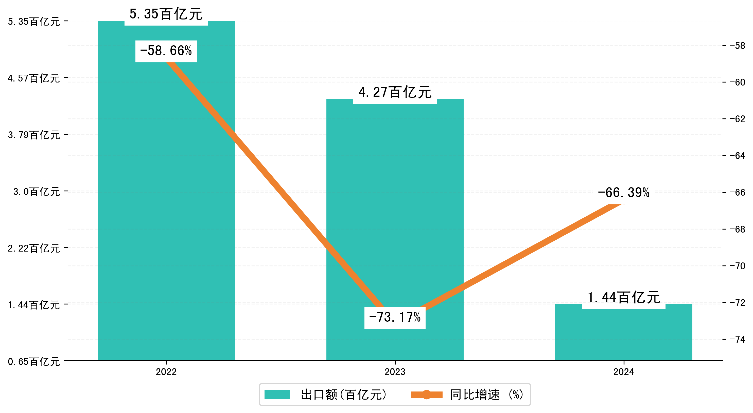 以美元计,2024年1-8月九江市出口额为20,2042.9063万美元,相比上年同期减少了41,5827.1464万美元,同比减少-67.00%。