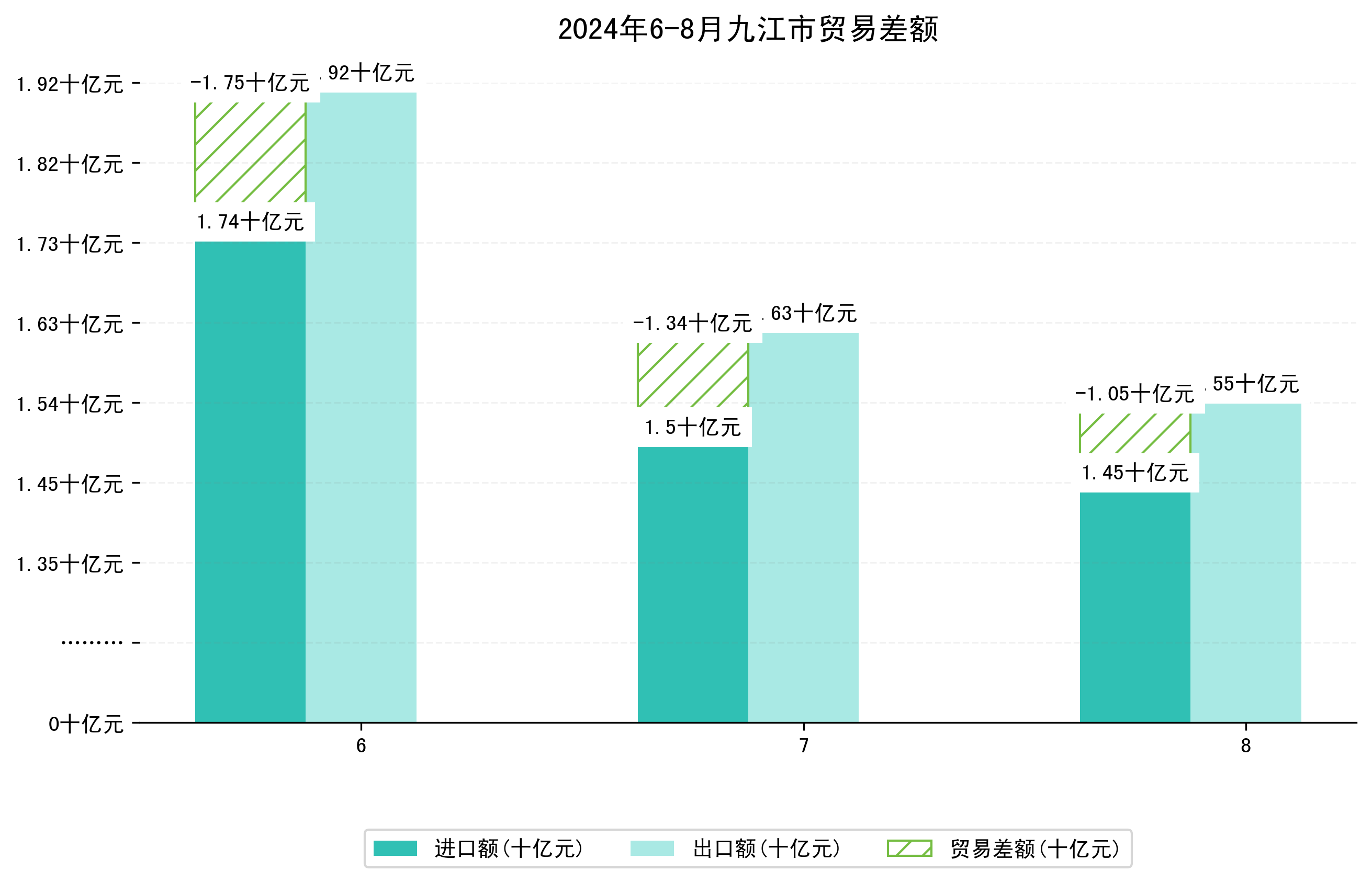 (图一:2024年6-8月九江市进出口总额)