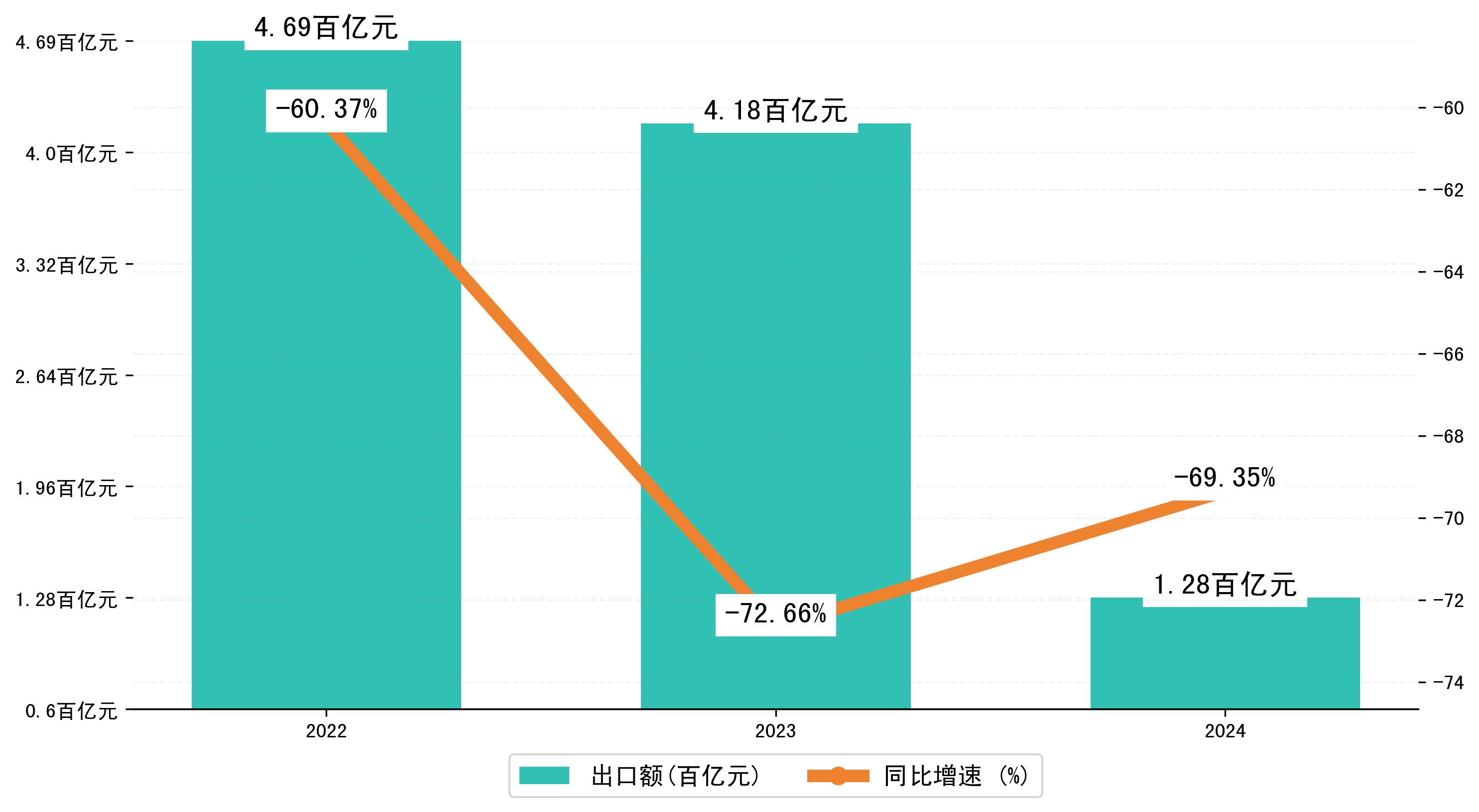 以人民币计,2024年1-7月九江市出口额为128,0999.418万元,相比上年同期减少了289,9086.0958万元,同比减少了-67.90%。