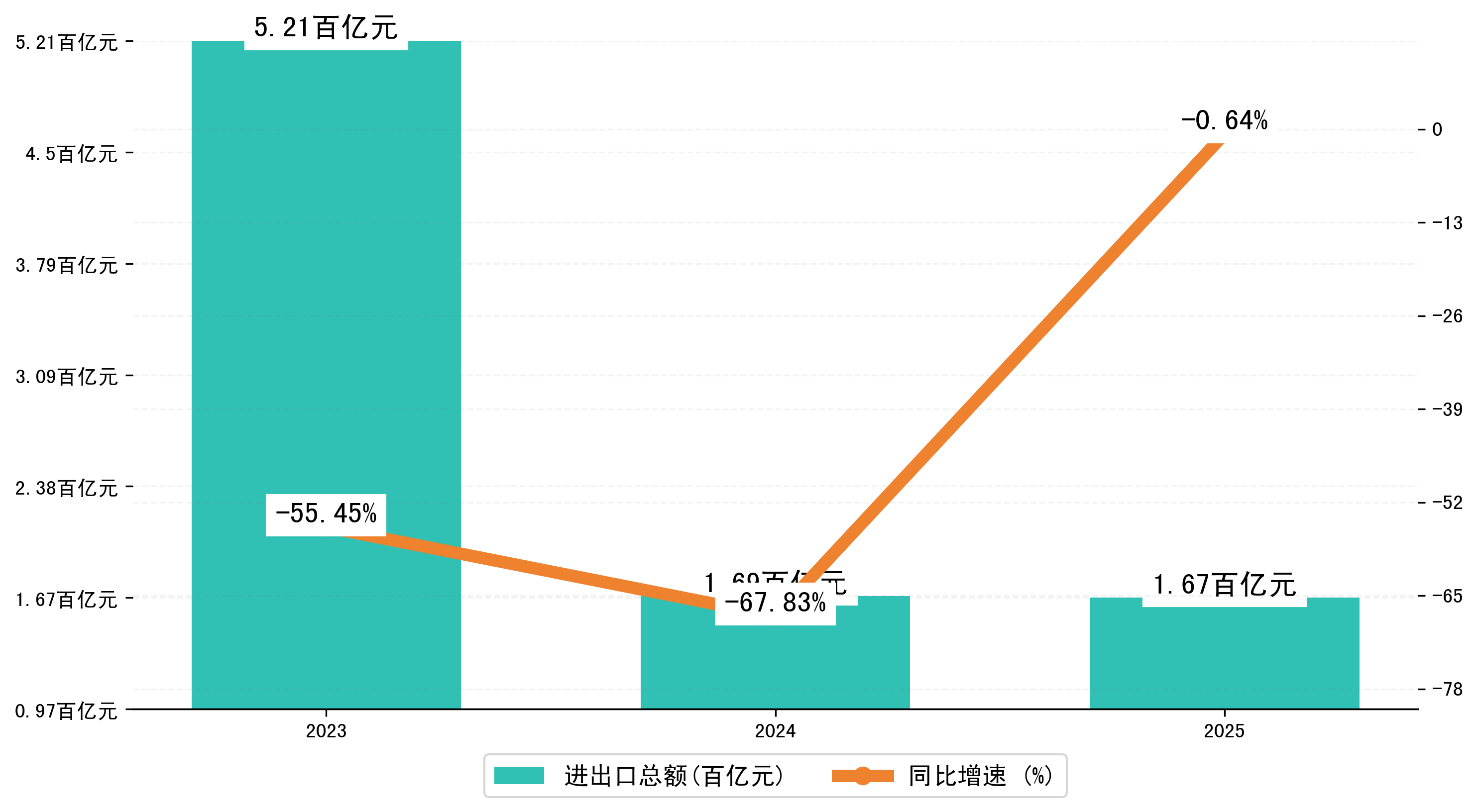 以人民币计,2025年1-5月九江市进出口总额为167,4546.6421万元,相比上年同期减少了1,0858.5485万元,同比减少了-1.60%。