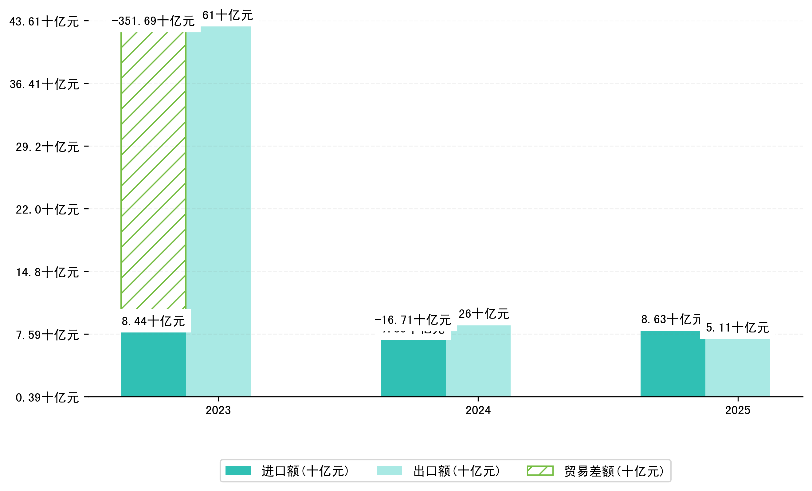 以美元计,2025年1-5月九江市贸易差额为7137,1471万美元(贸易逆差),相比上年同期减少了3,0637,6680万美元,同比减少-130.37%。