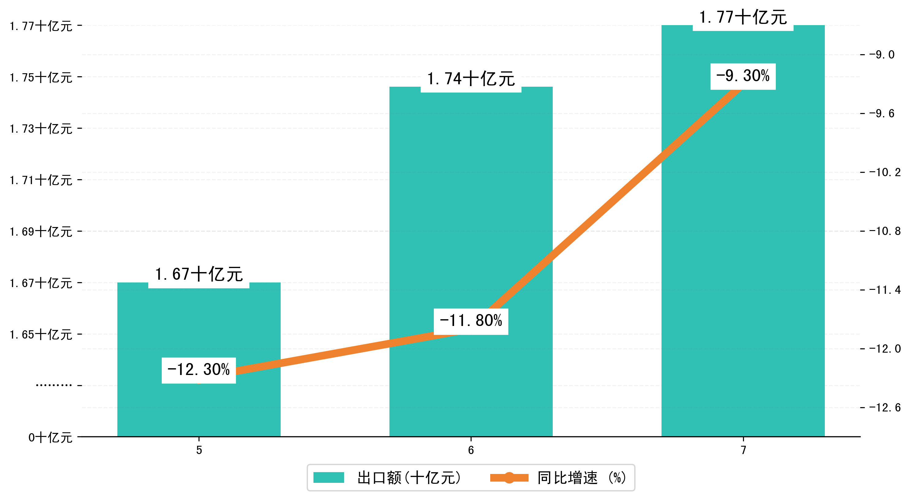 (图二:2025年5-7月九江市出口额)