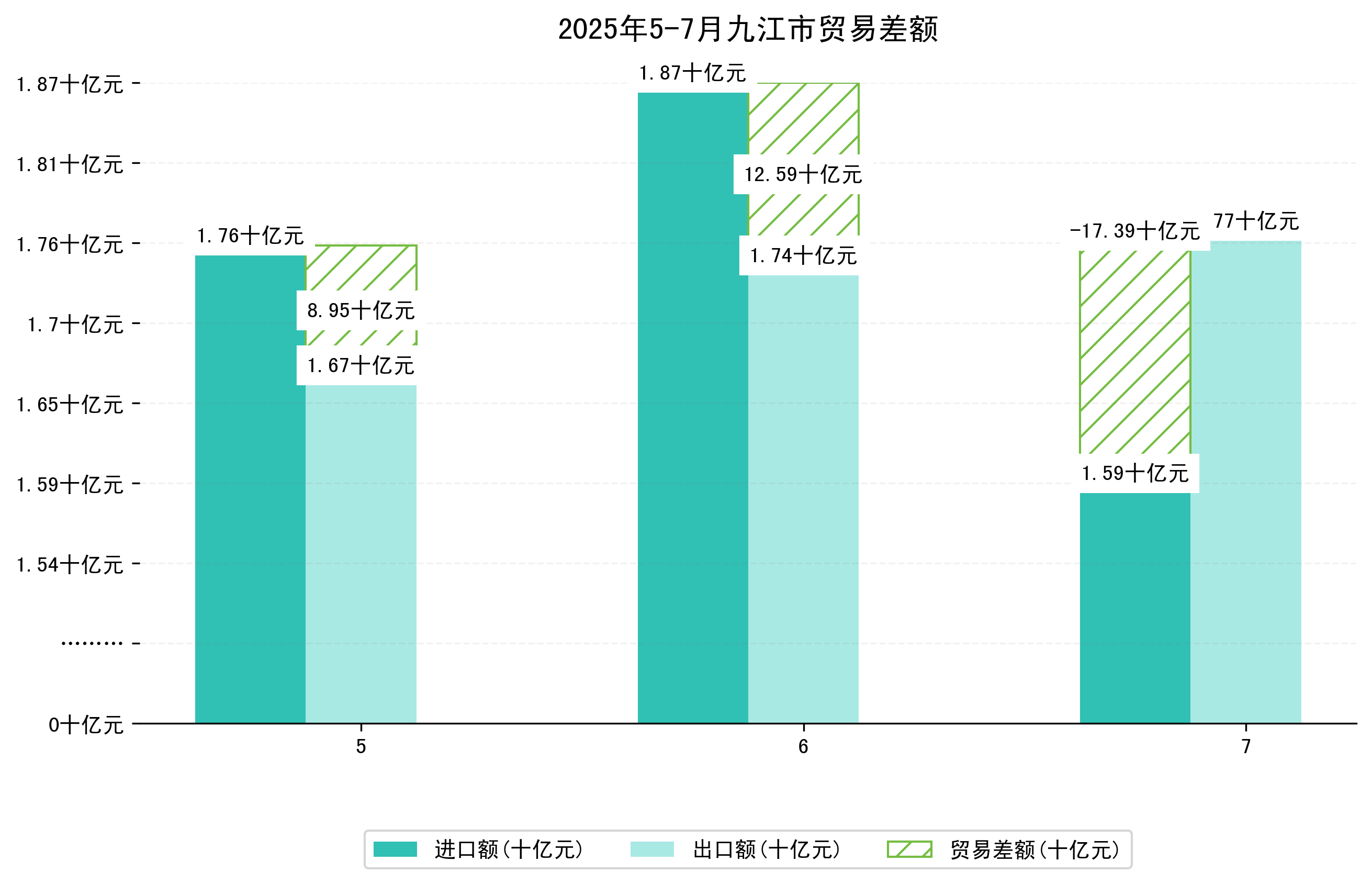(图一:2025年5-7月九江市进出口总额)