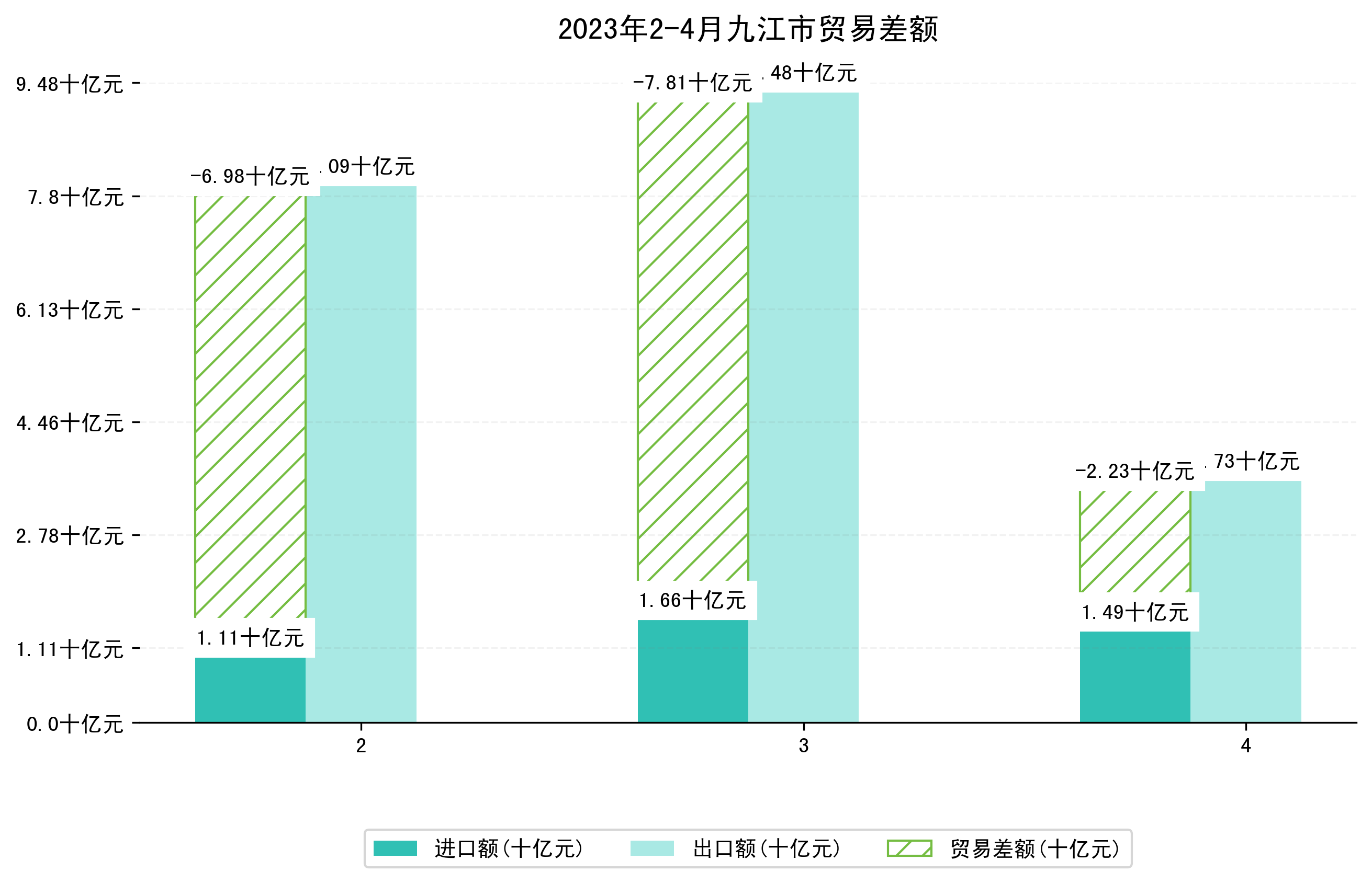 (图四:2023年2-4月九江市贸易差额)