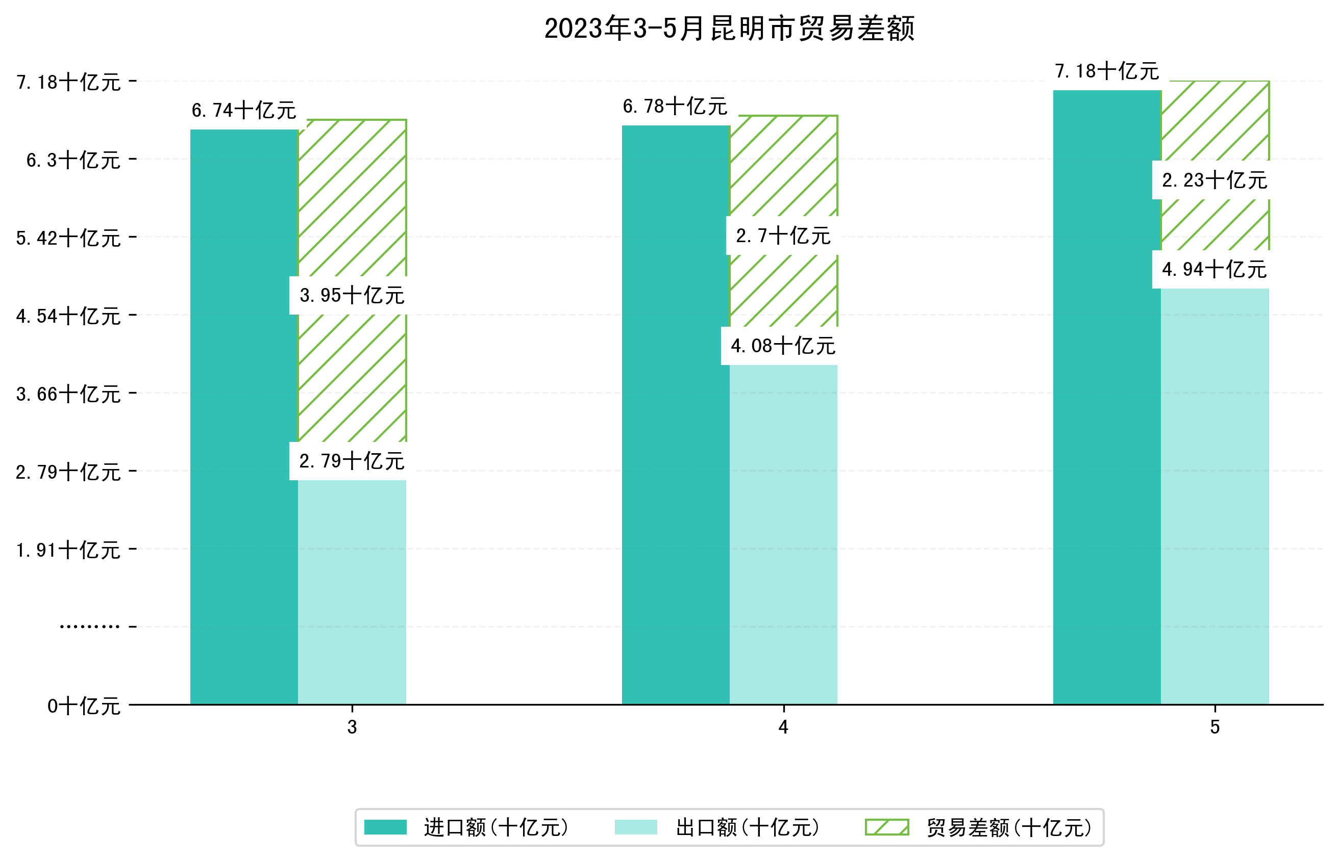 2023年5月昆明市进出口总额及进出口差额统计分析