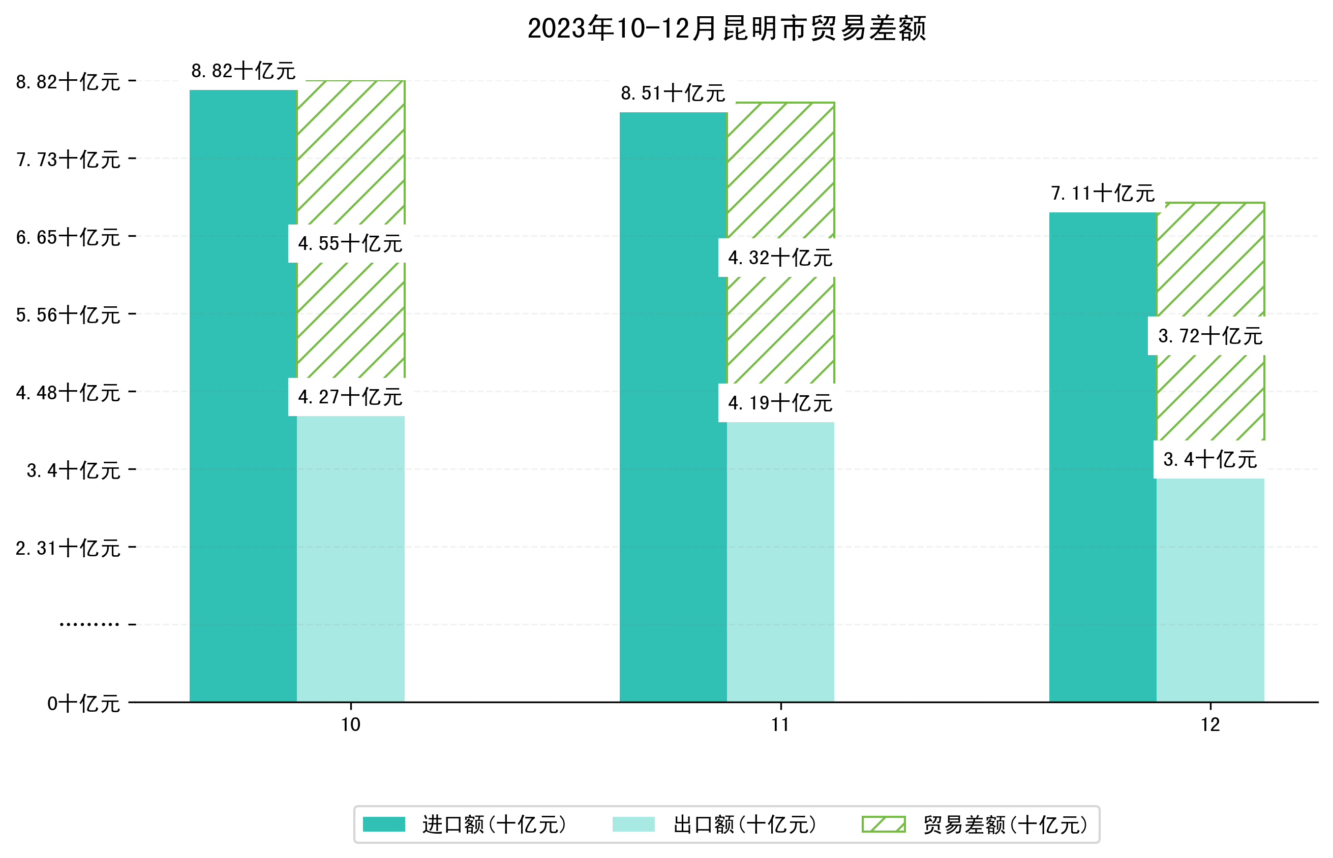(图一:2023年10-12月昆明市进出口总额)