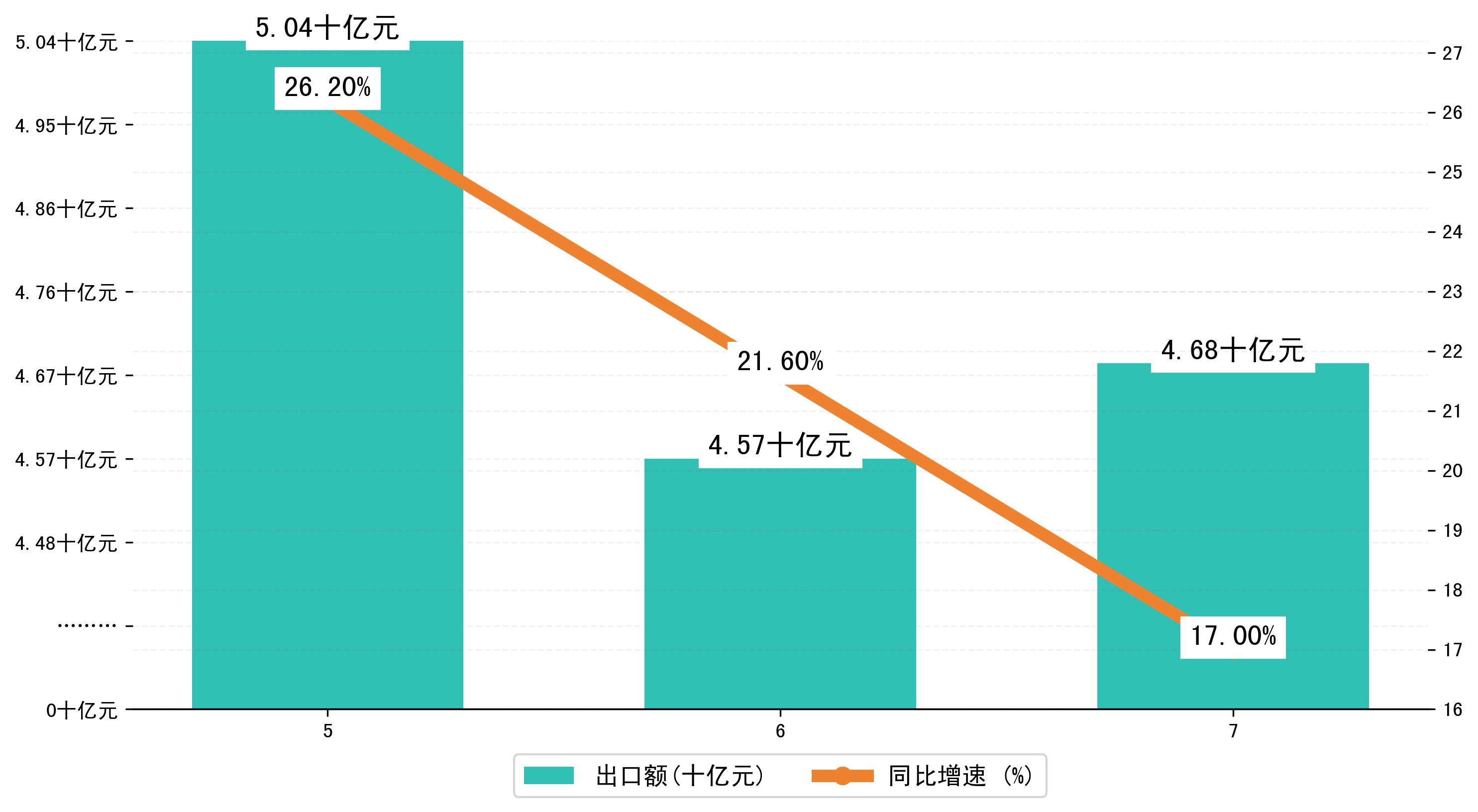 一、2024年7月昆明市单月出口总额及进出口差额统计分析