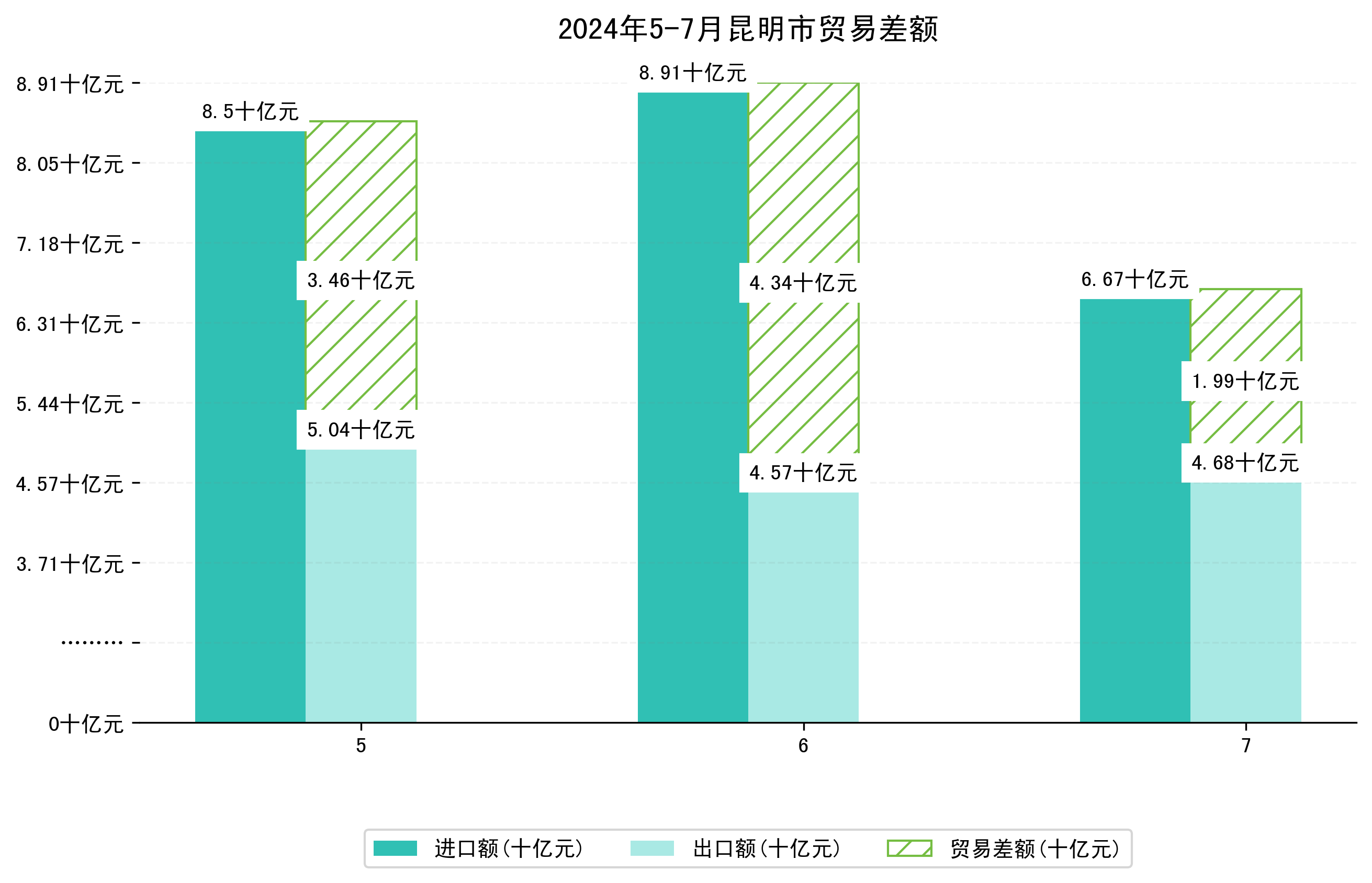 2024年7月昆明市进出口总额及进出口差额统计分析