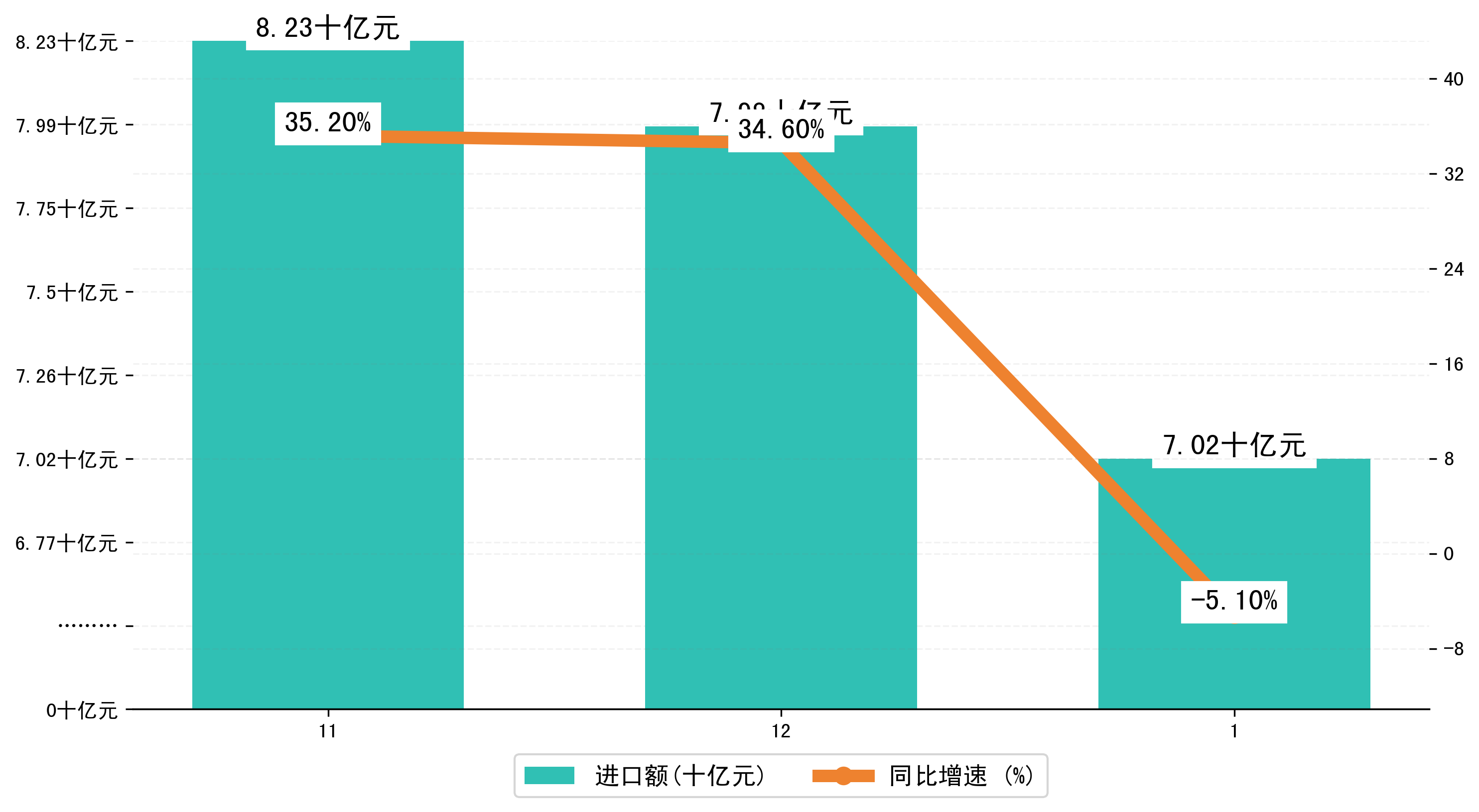 以人民币计,2023年1-1月昆明市进口额为70,1703.6239万元,相比上年同期减少了3,7042.5792万元,同比减少了-5.10%。