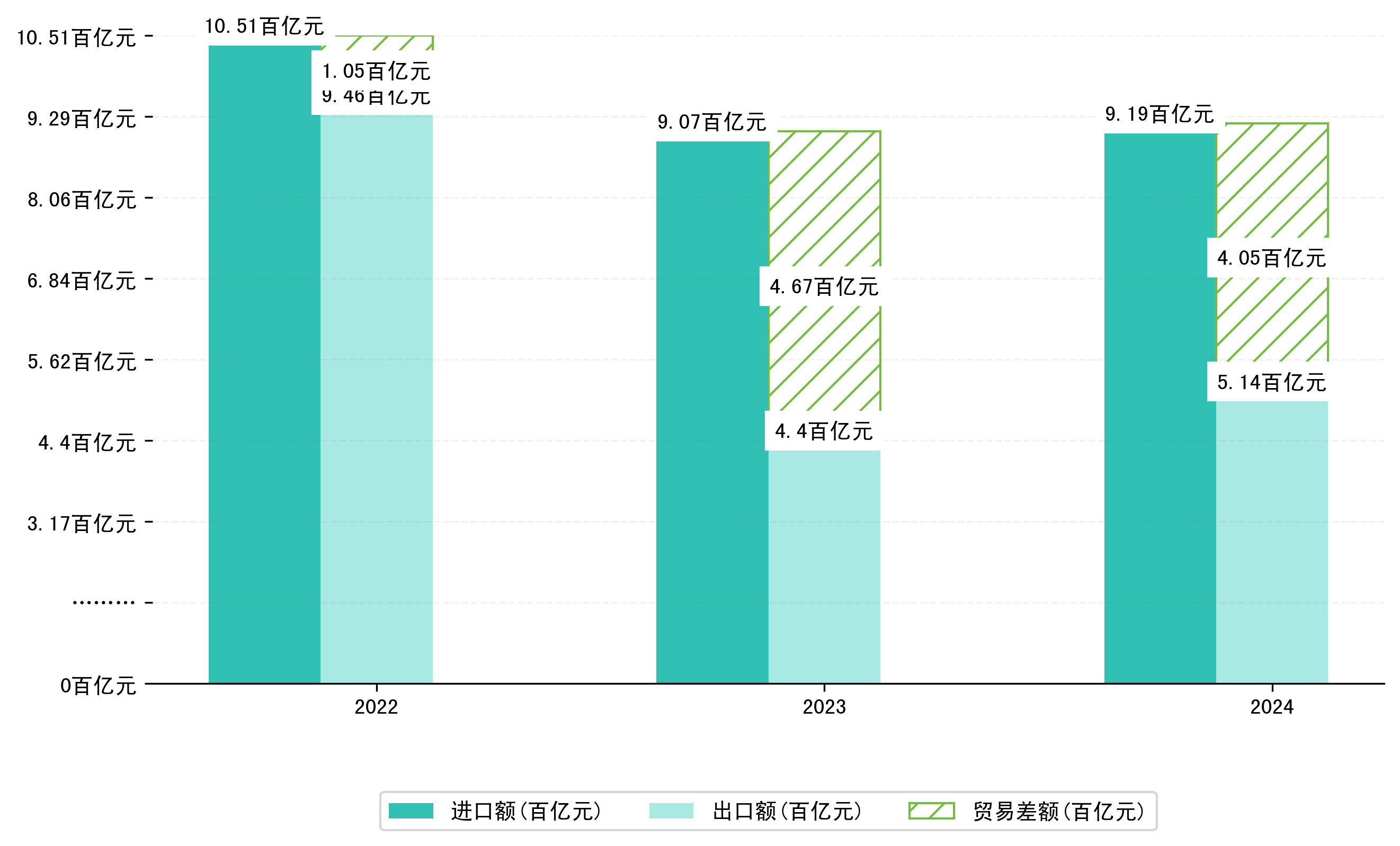 以美元计,2024年12月昆明市贸易差额为5,8727,8225万美元(贸易逆差),相比上月减少了2,3296,3596万美元;相比上年同期减少了6909,5837万美元,同比减少13.33%。