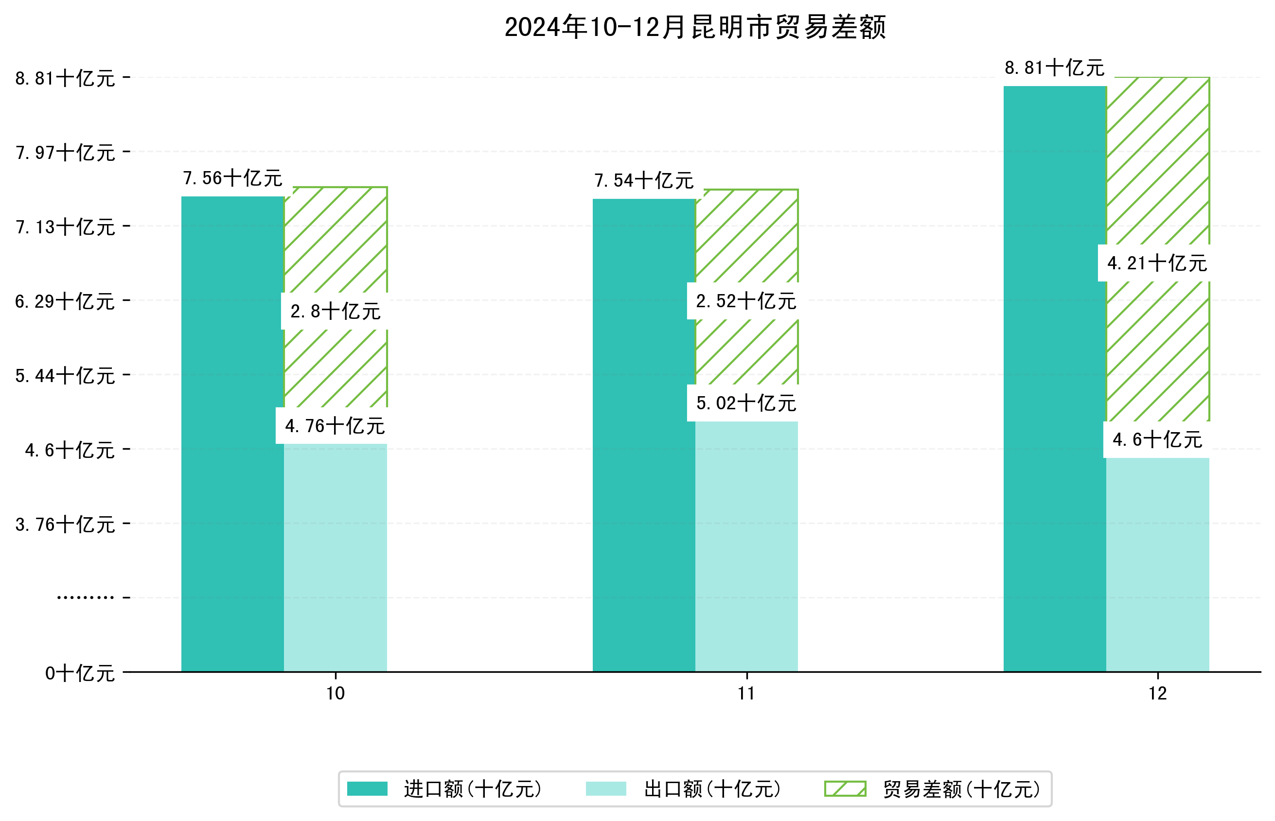 2024年12月昆明市进出口总额及进出口差额统计分析
