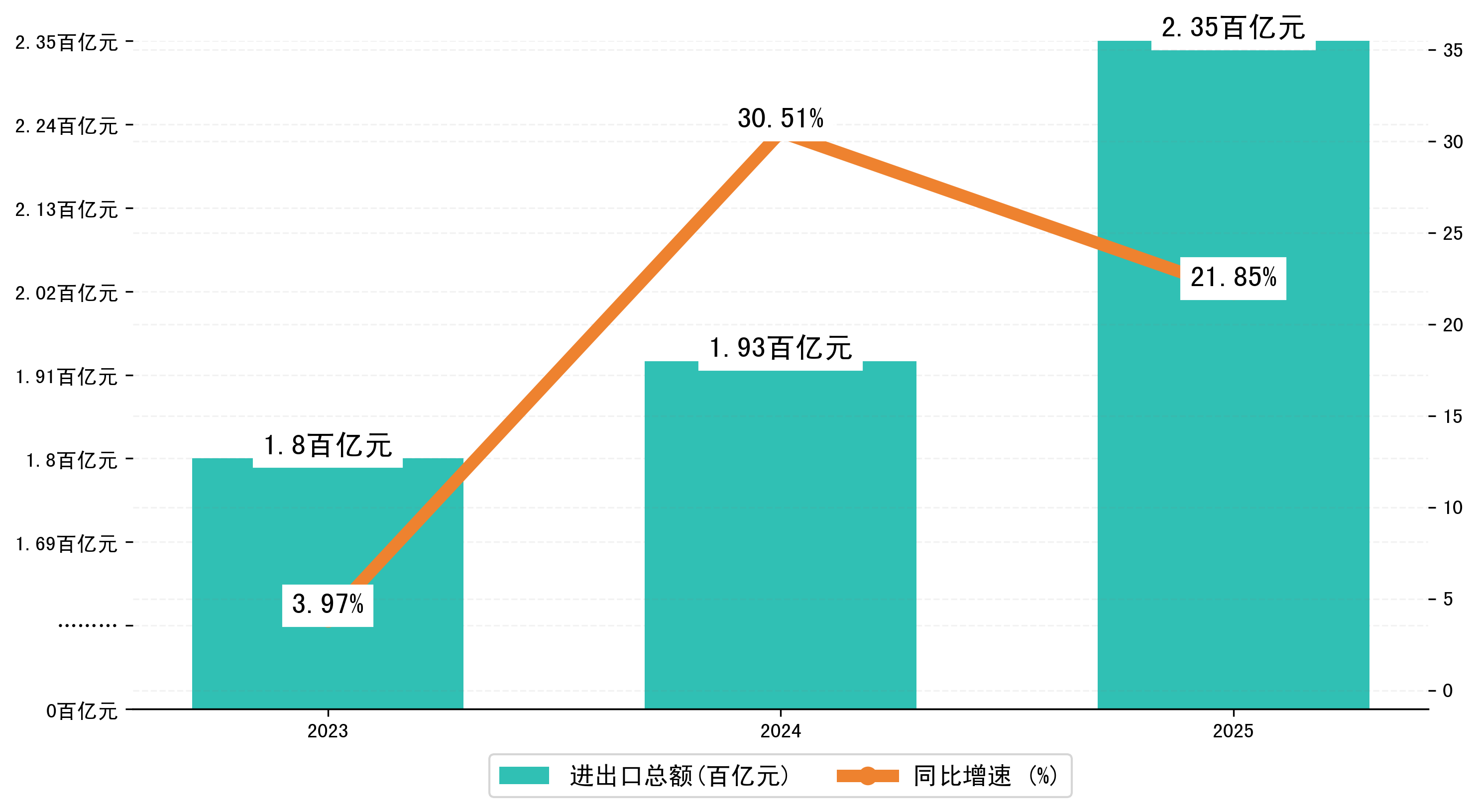 以人民币计,2025年1-2月昆明市进出口总额为235,3978.9705万元,相比上年同期增加了42,2049.4254万元,同比增加了21.00%。