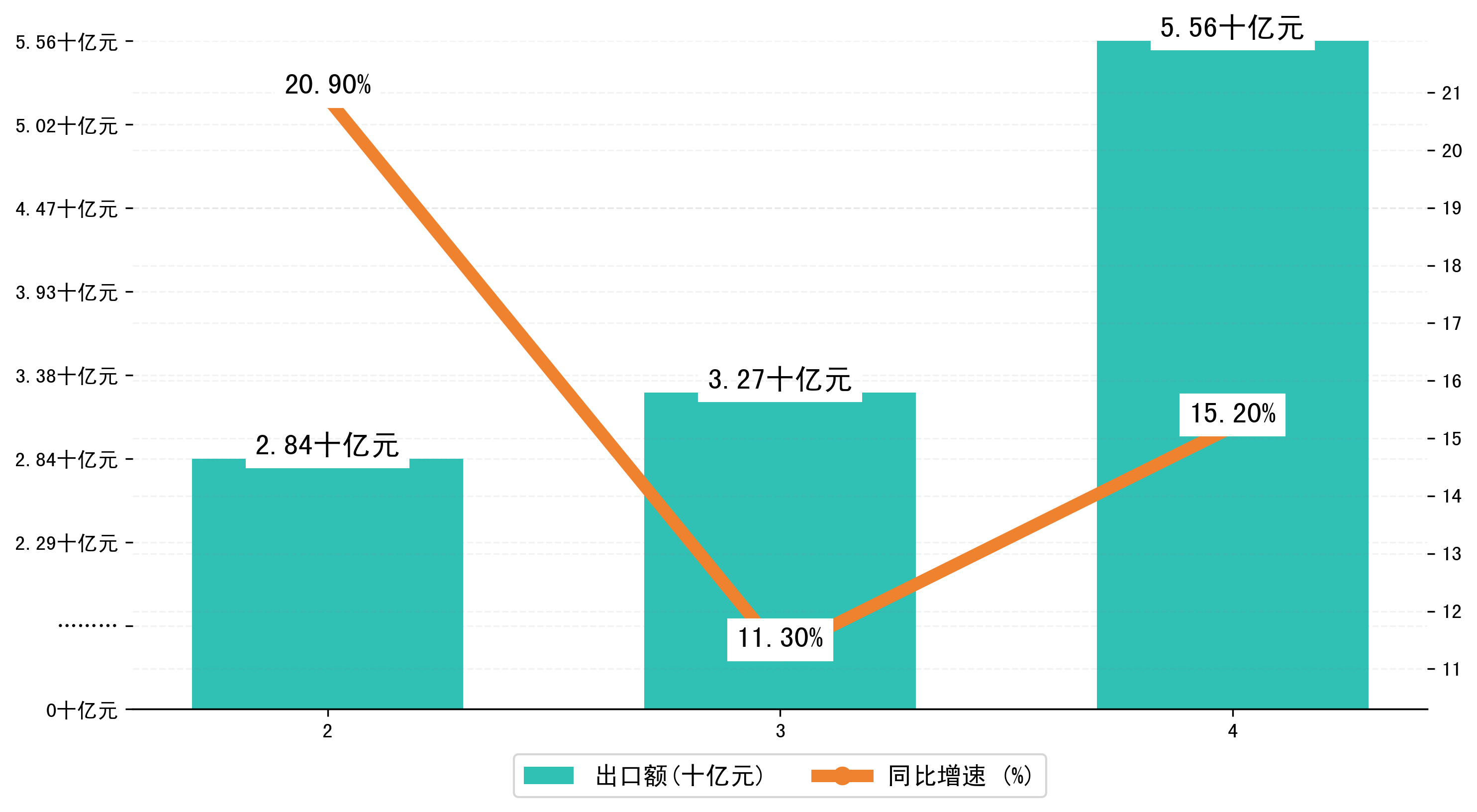 以美元计,2025年1-4月昆明市出口额为21,5622.6892万美元,相比上年同期增加了2,6504.1858万美元,同比增加14.00%。