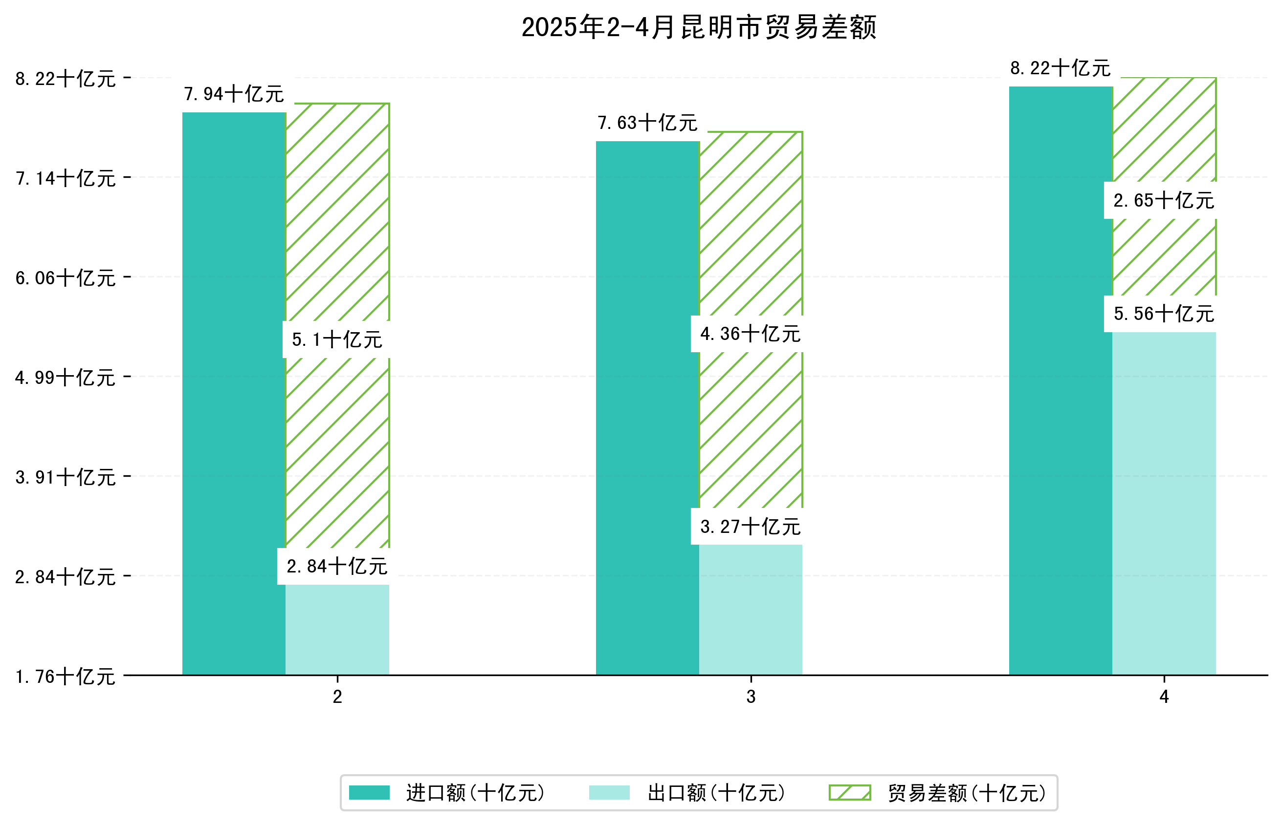 2025年4月昆明市进出口总额及进出口差额统计分析